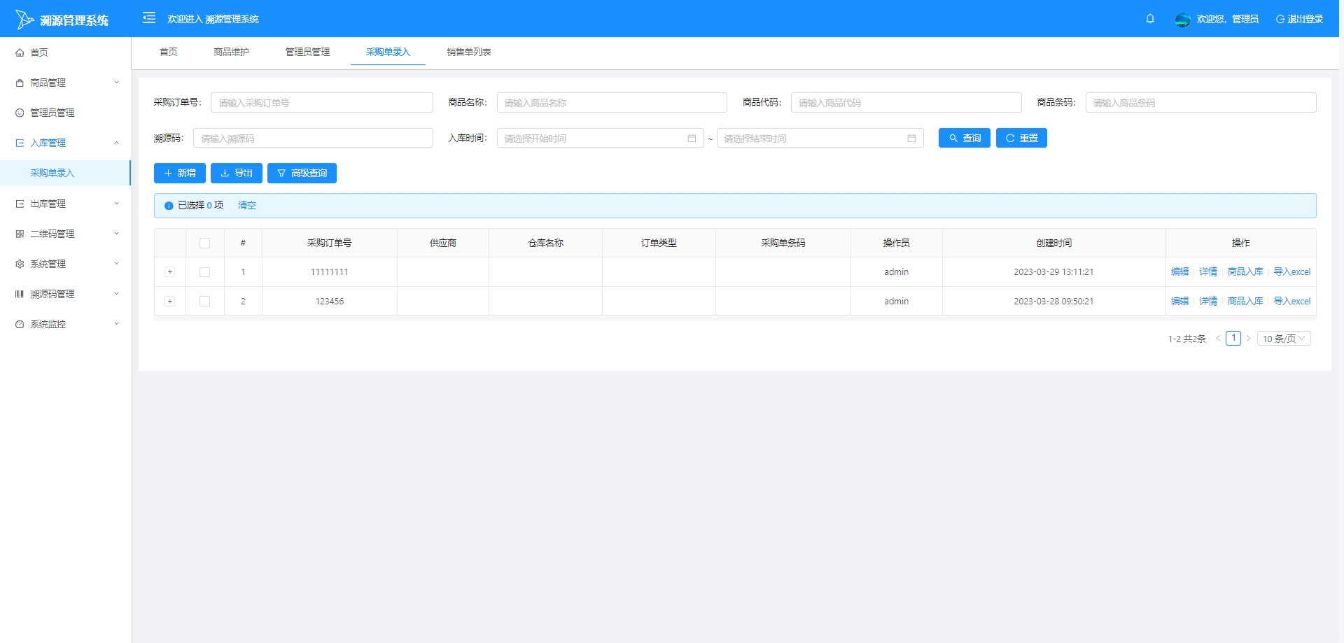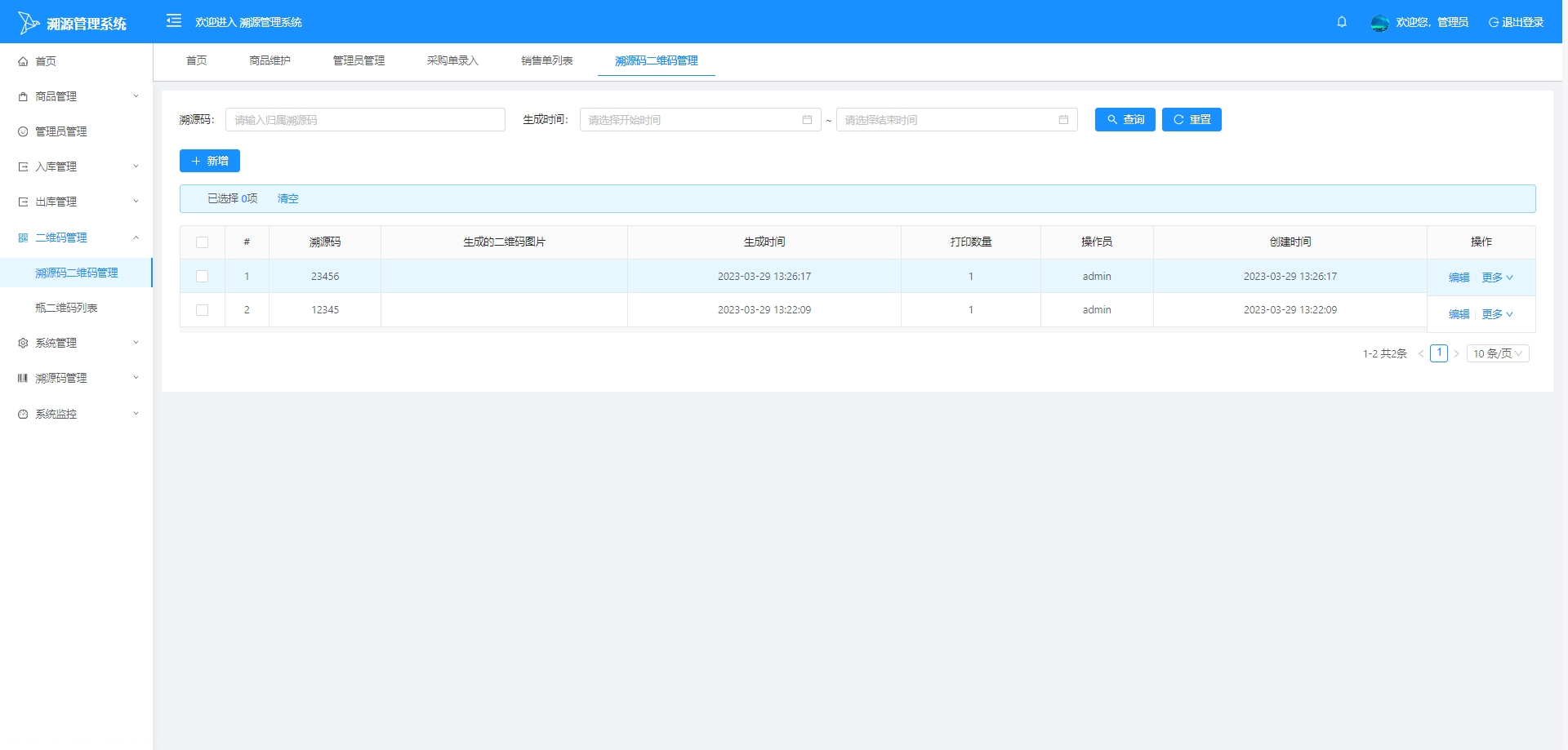 溯源码列表:展示系统中所有溯源码的列表,包括溯源码的状态、分配的产品、以及相关的溯源信息。