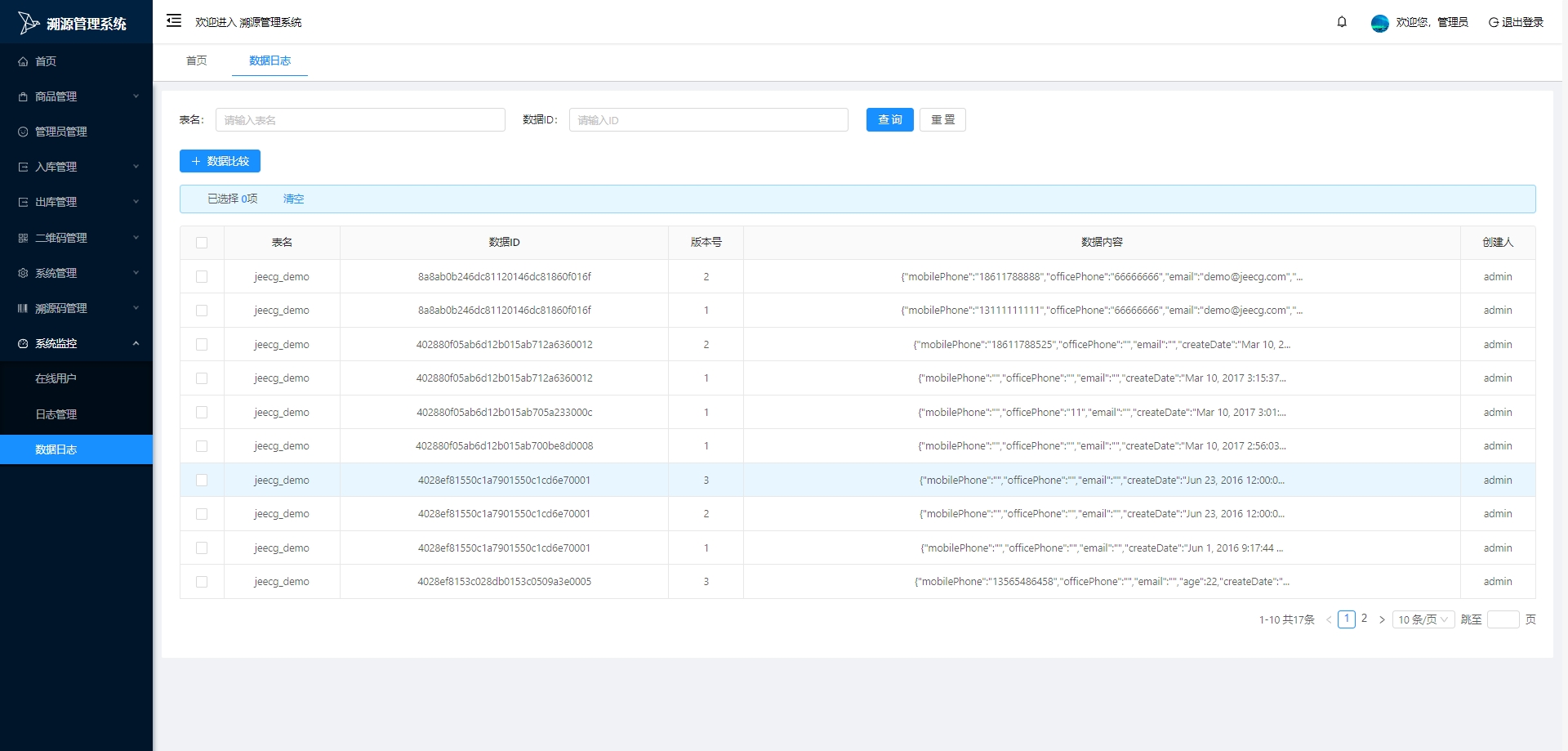 数据日志:记录和查看系统中数据变更的日志,包括数据的创建、更新、删除操作记录,以便于数据审计和回溯。