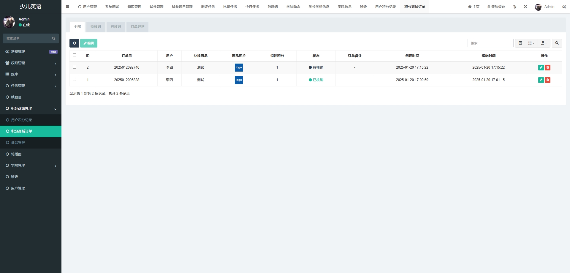 - 积分商城管理:管理积分商城的商品信息,包括商品的添加、编辑和删除,处理积分商城的订单。