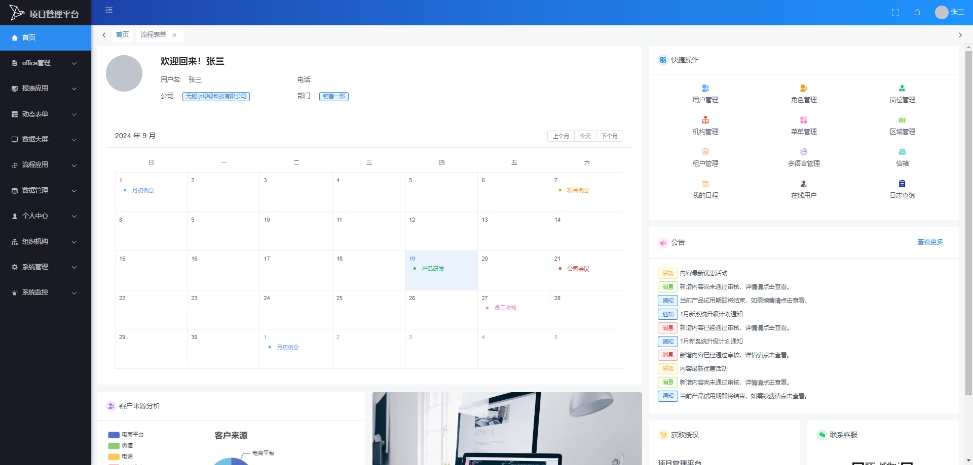 待办任务:展示用户当前需要处理的任务列表,包括待审批、待反馈的任务等。