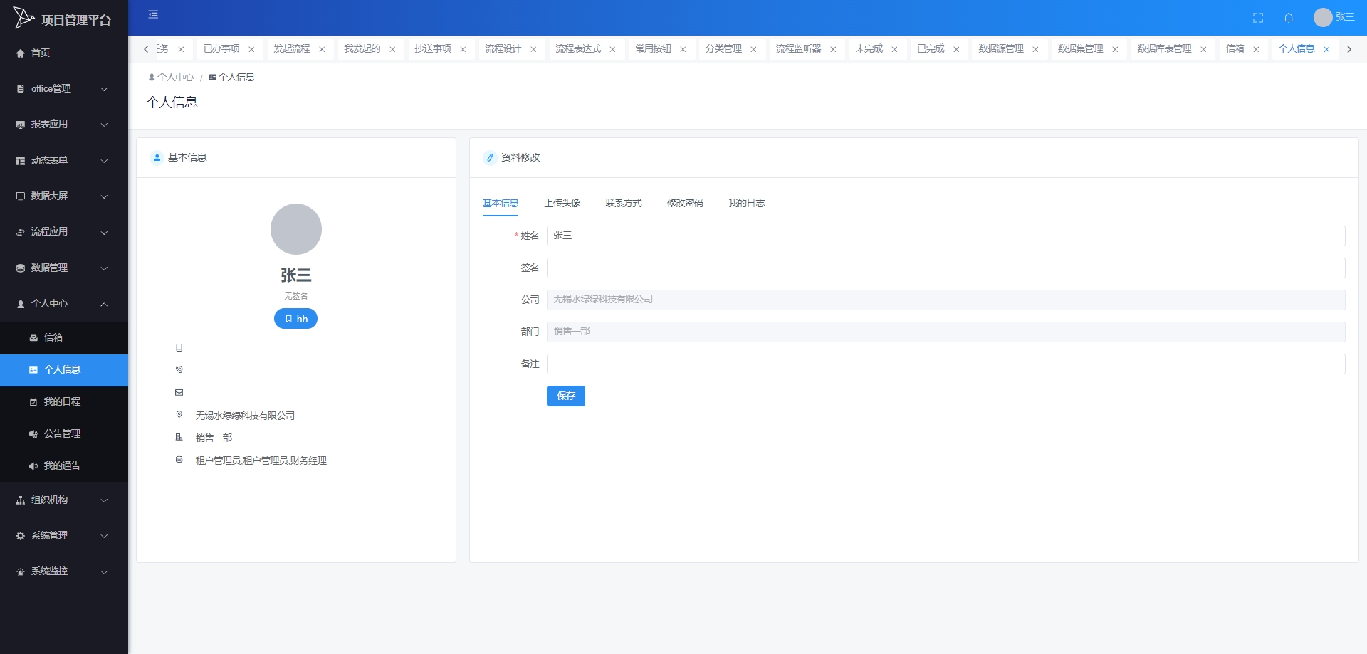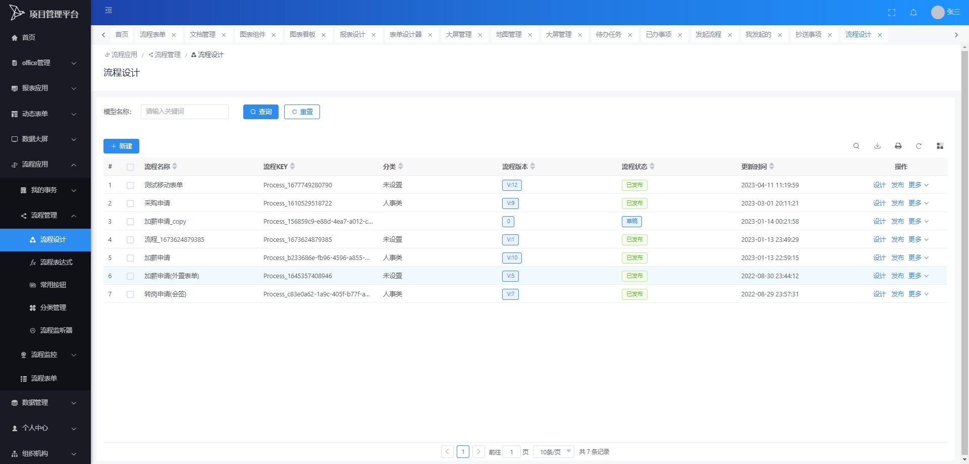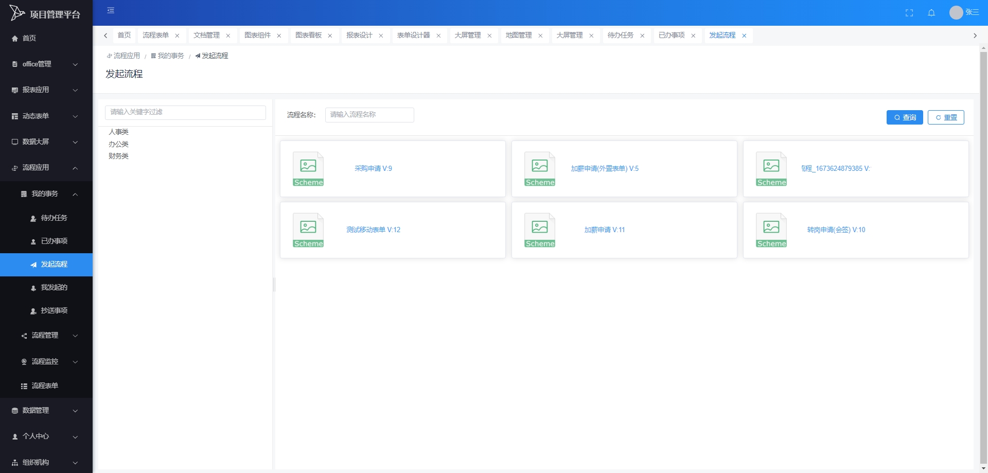 流程表单:管理和查看与流程相关的表单,包括表单的设计、填写、提交等。