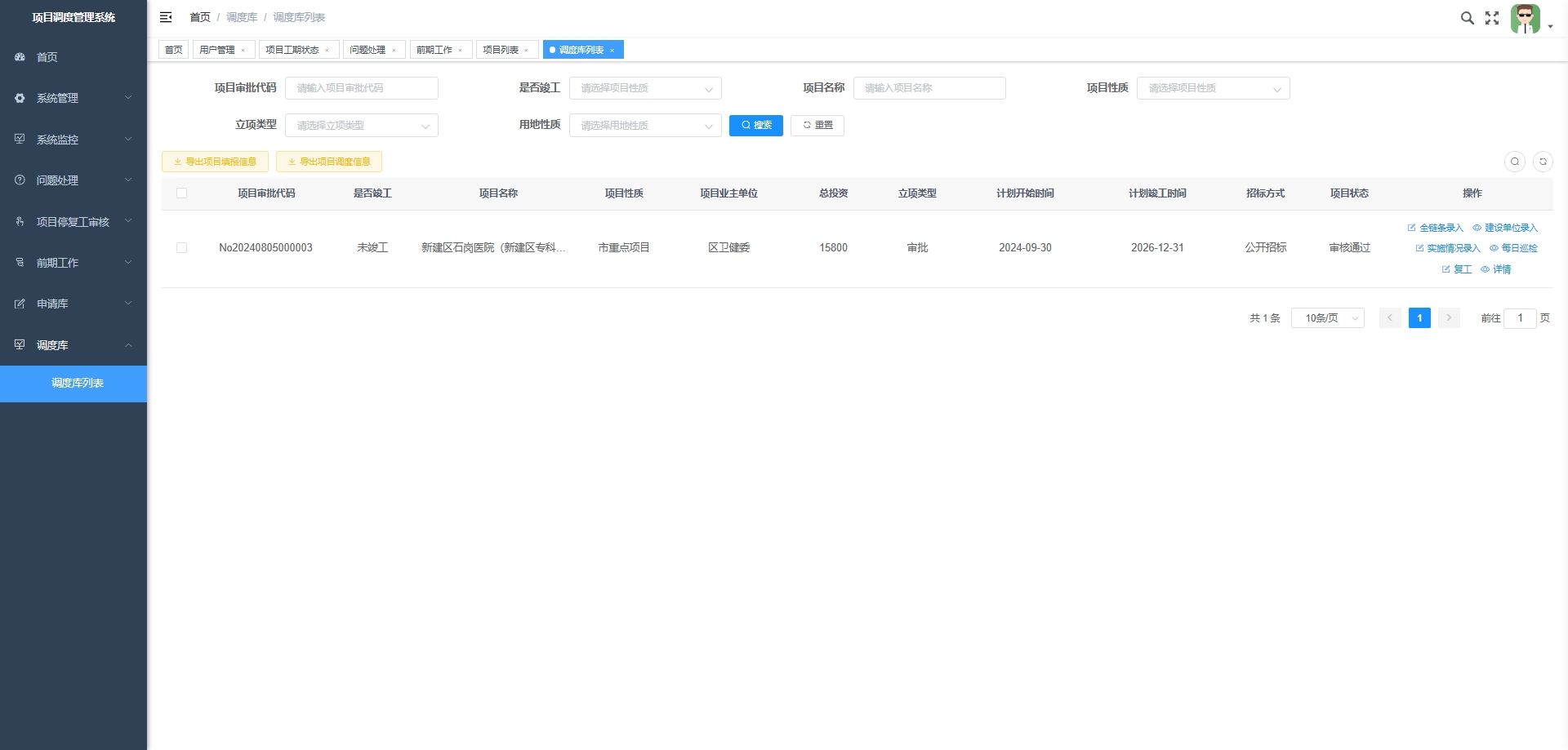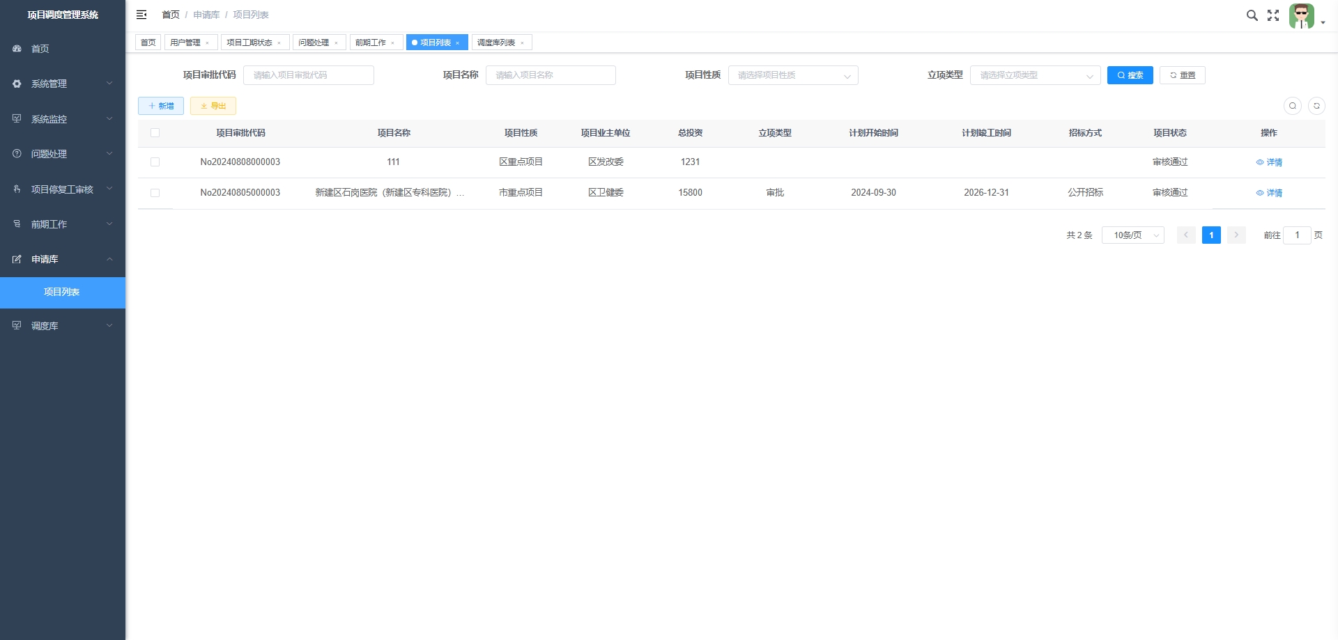- 项目进度跟踪:跟踪并显示项目的各个阶段,包括谋划阶段、前期工作、开工建设和竣工。