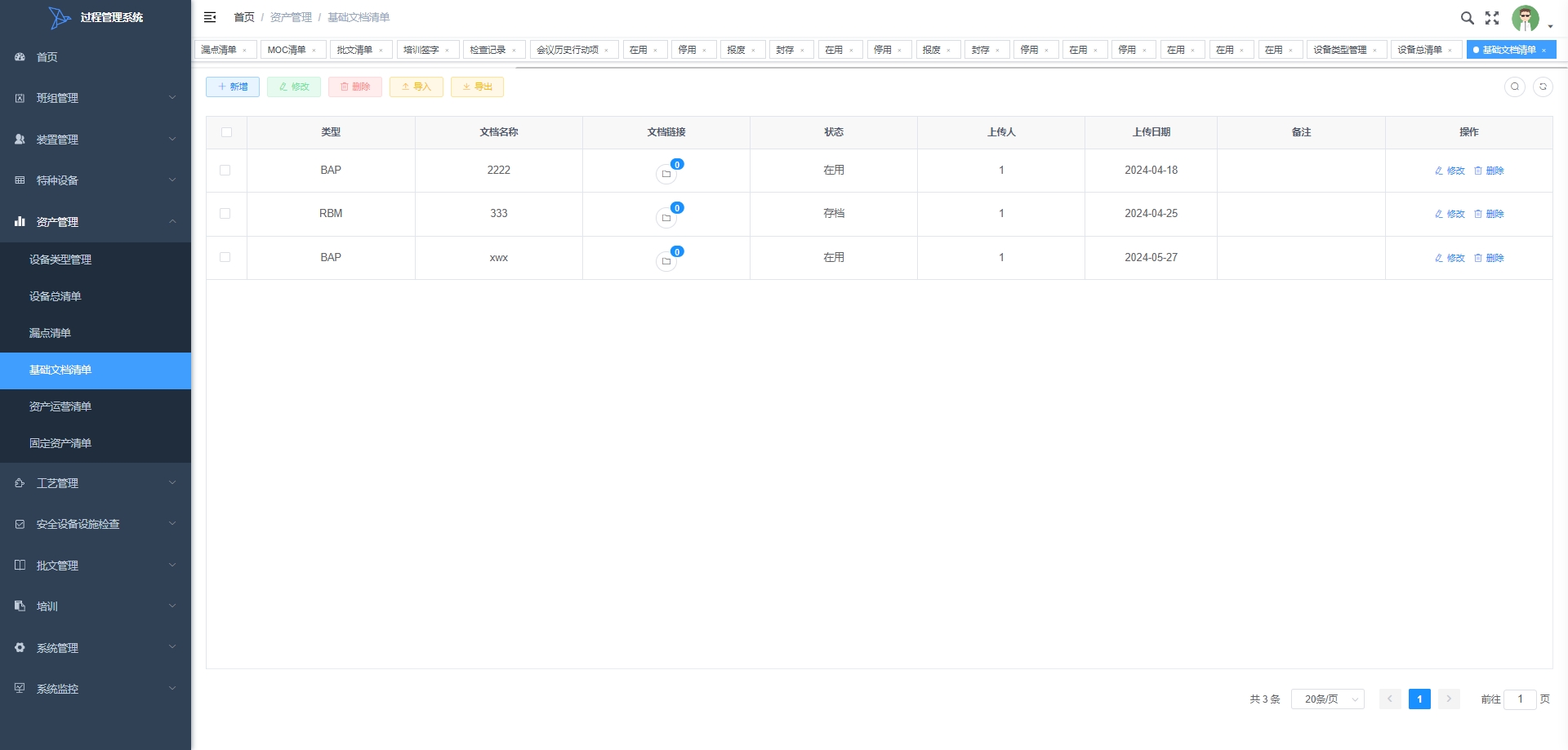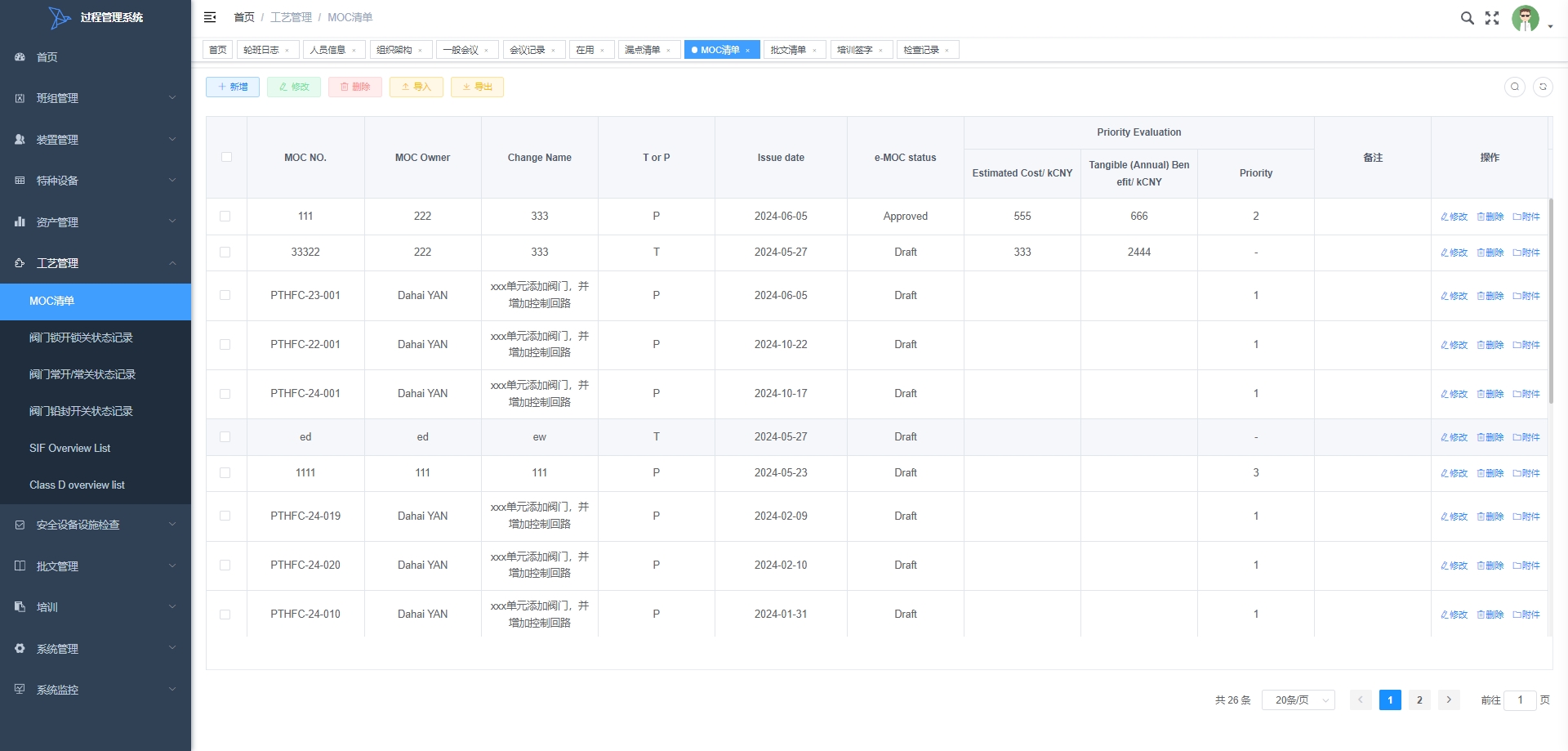 - MOC清单:管理变更控制(MOC)的清单,包括变更的申请、审批和实施状态,以确保变更的可控和安全性。