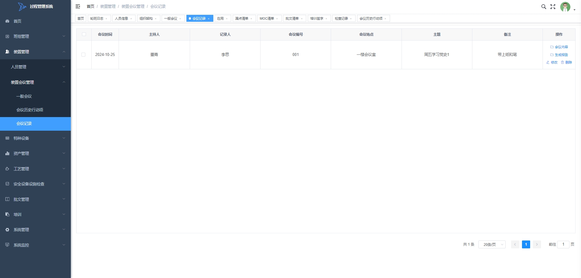 - 装置会议管理:记录会议中产生的行动项,包括行动项的分配、进度跟踪和完成情况,以确保会议决议的有效执行。