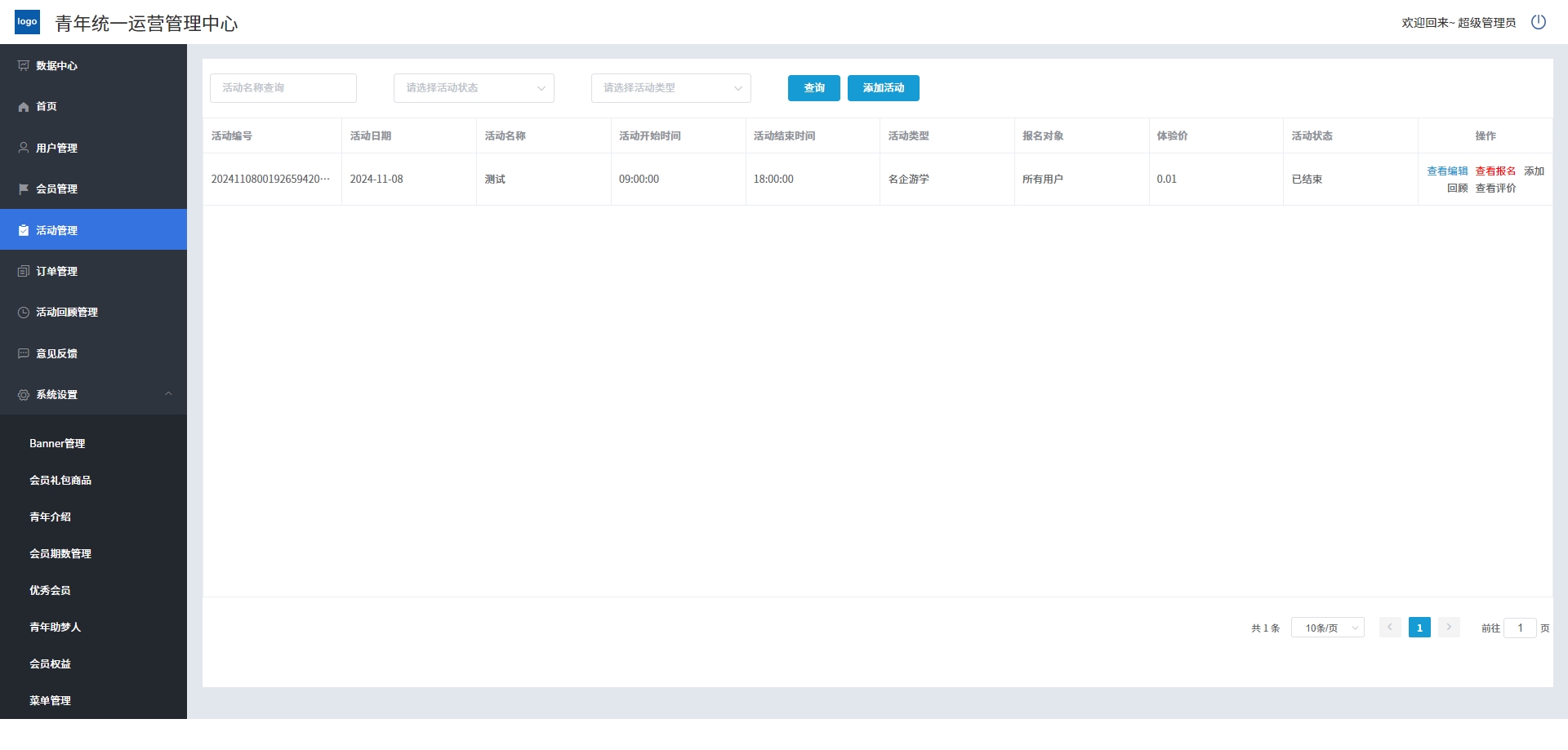- 已结束:展示已经结束的活动列表,用户可以查看历史活动或获取反馈。