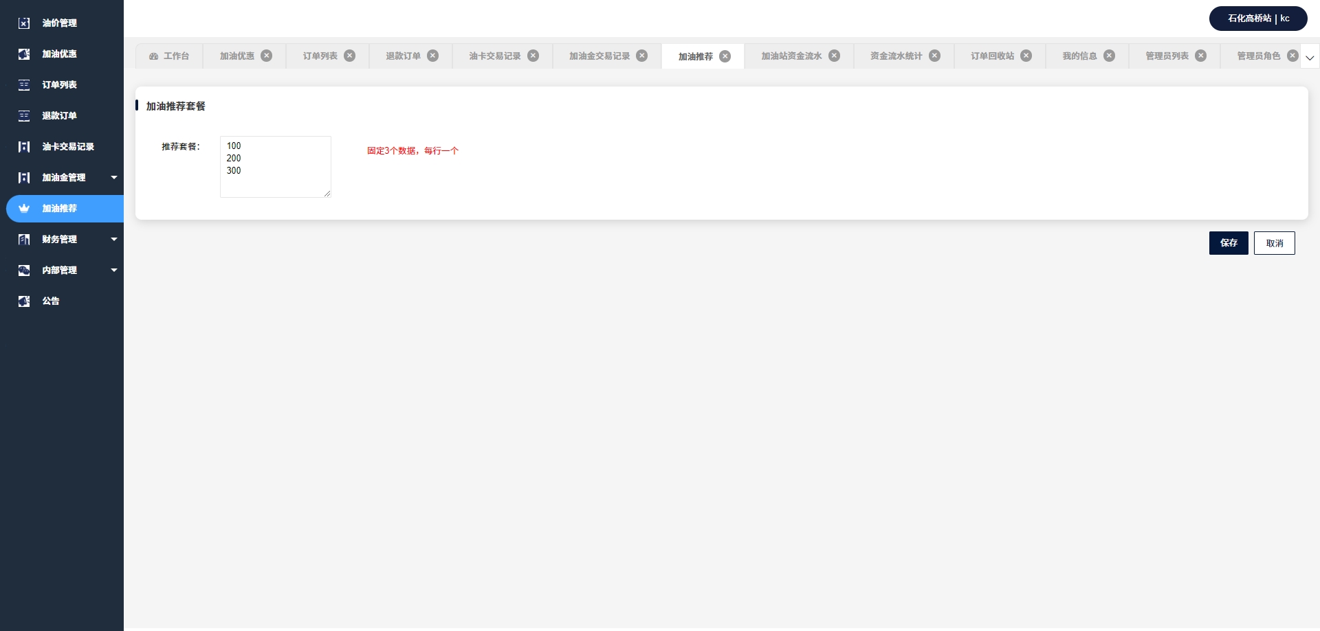- 油卡列表:管理油卡信息,包括油卡的发放和回收。