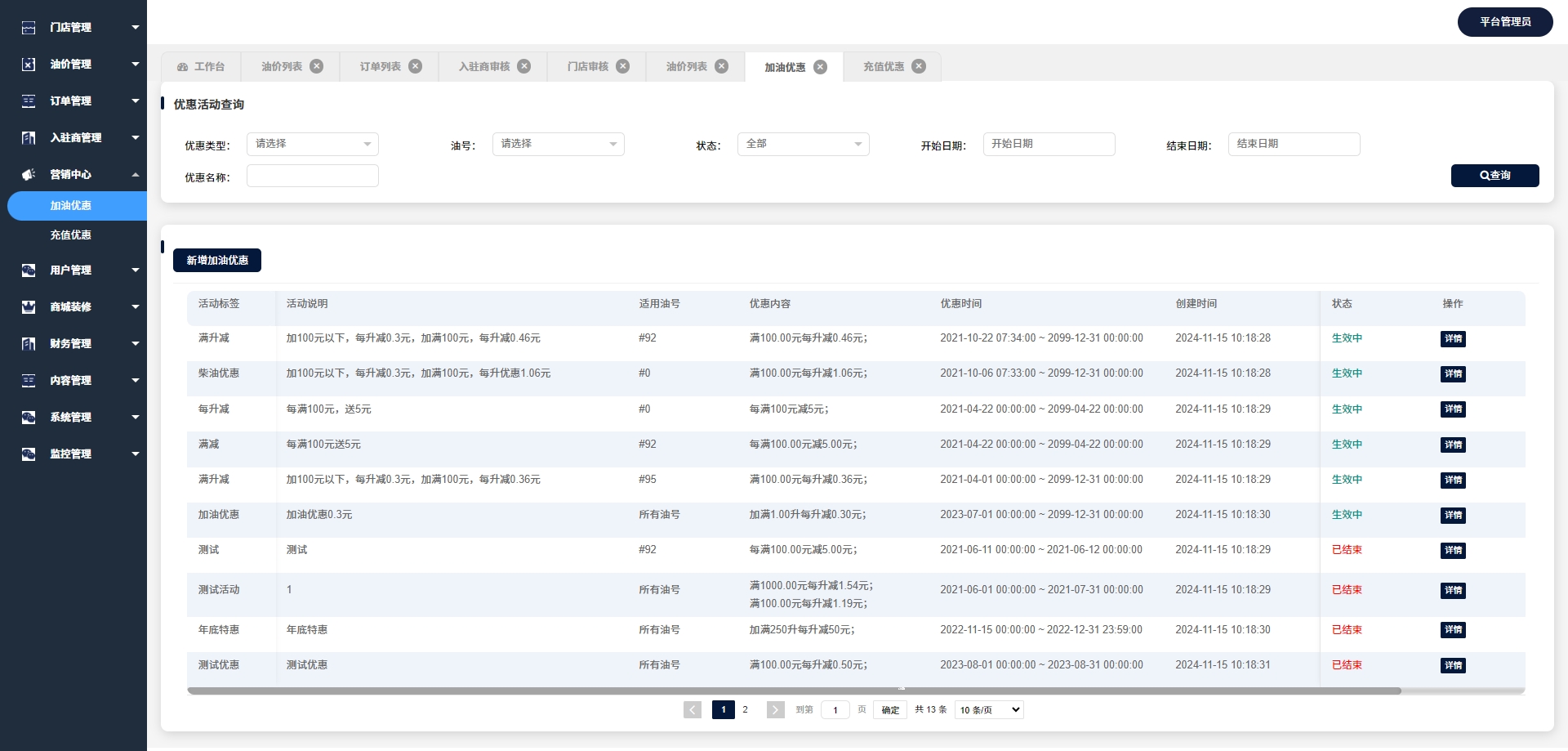 - 油品管理:管理油品信息,包括油品种类和特性。
