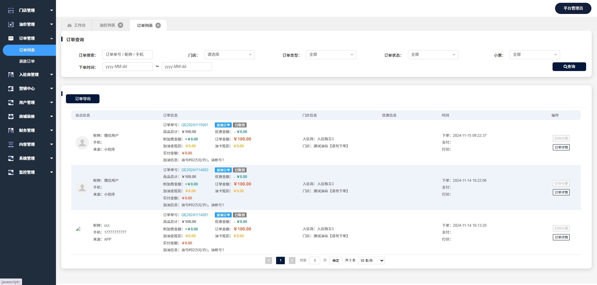 - 我的订单:用户可以查看和管理自己的加油订单历史。