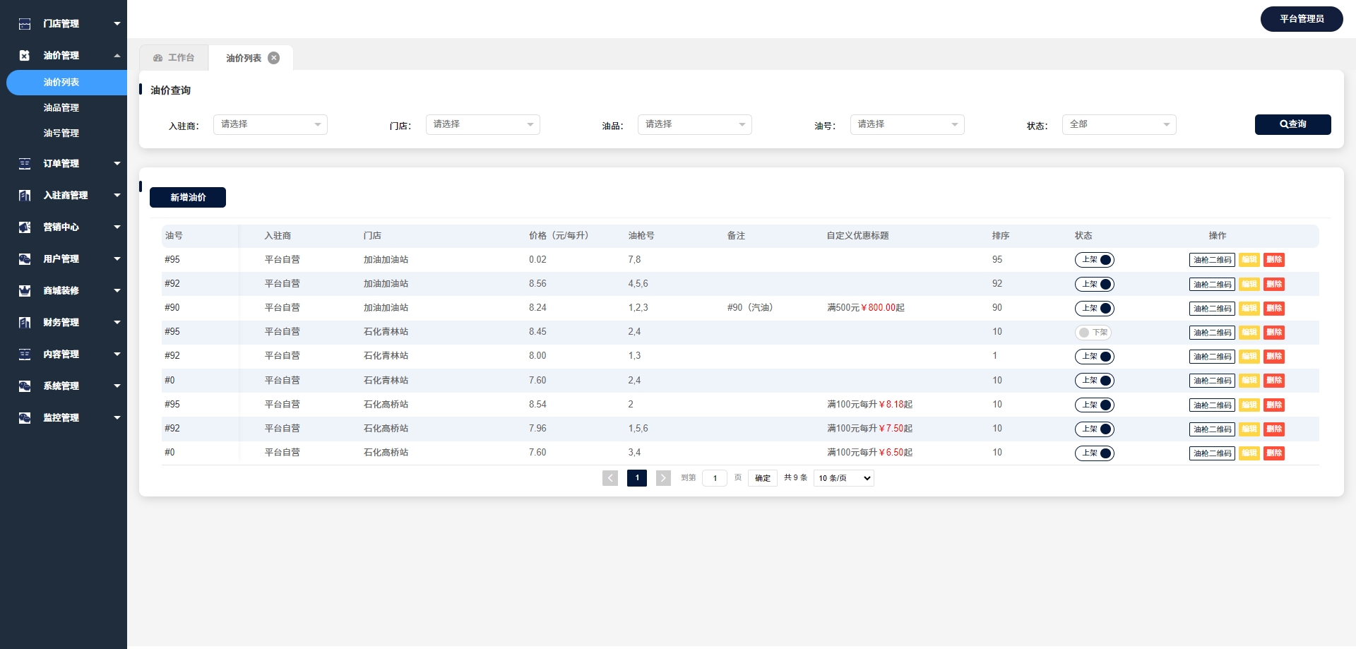- 油号管理:管理油品的编号和分类,以便于识别和销售。