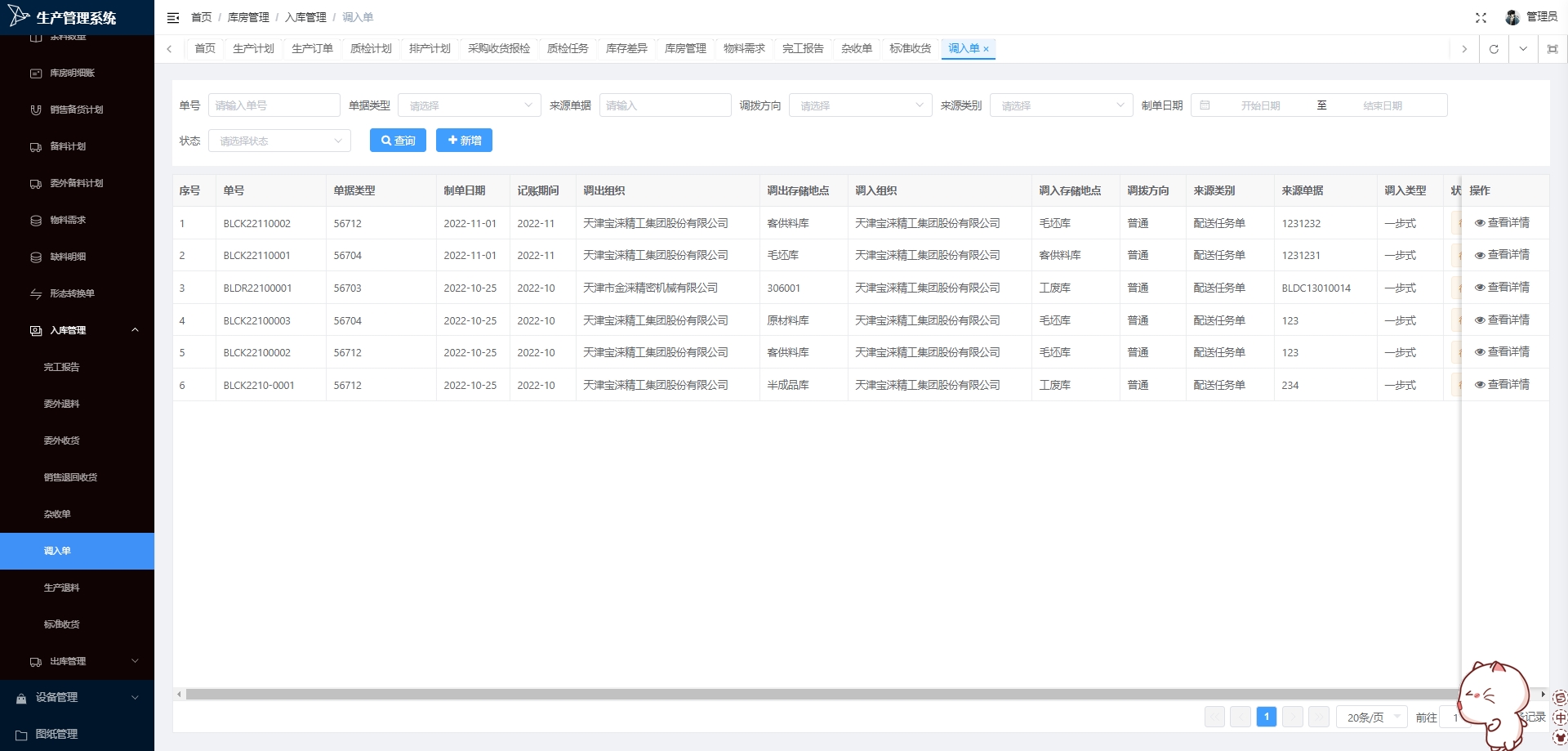 - 调入单:管理物料从一个库房调拨到另一个库房的过程,包括调拨申请、审批和执行。