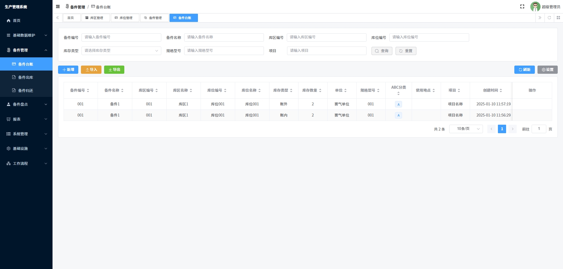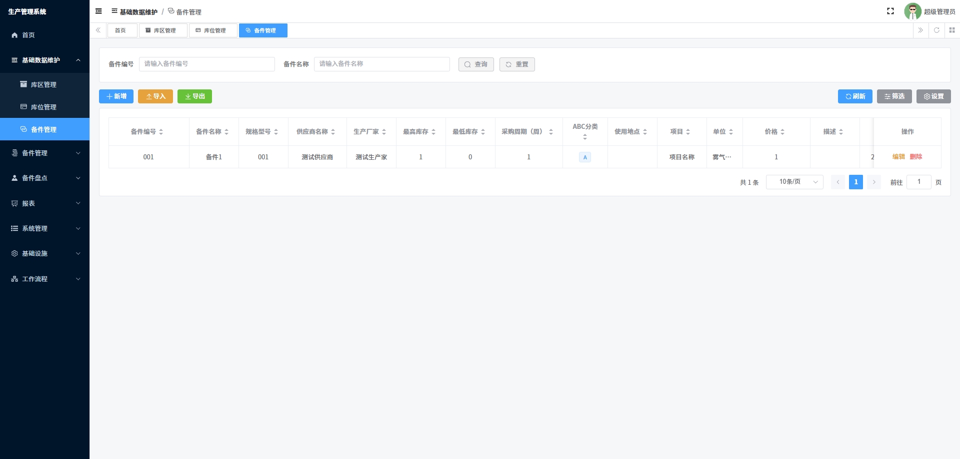 - 基础数据维护:管理备件的基本信息,包括备件编号、名称、规格等。