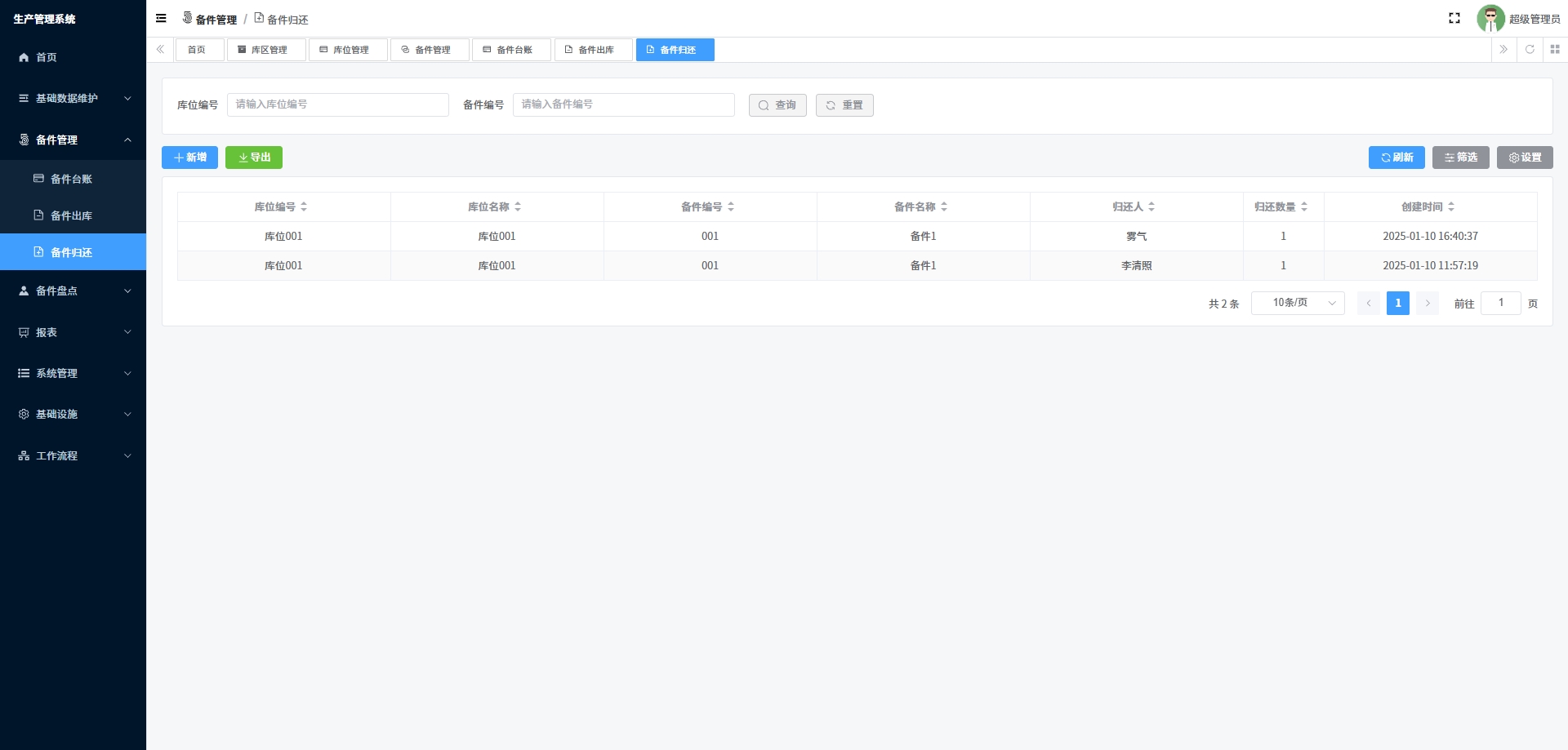 - 备件归还:管理备件使用后的归还流程,确保备件的循环使用。