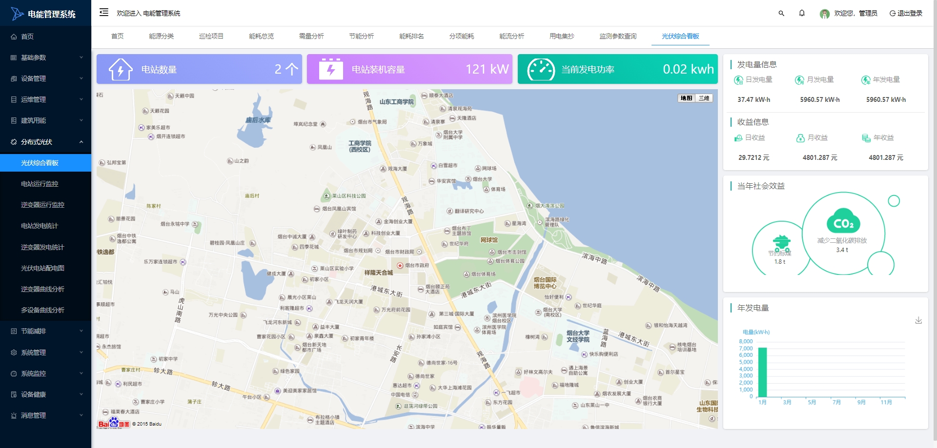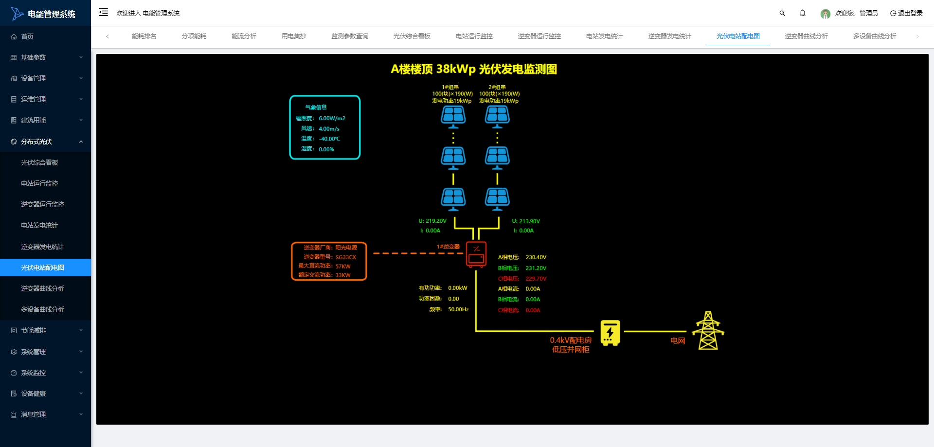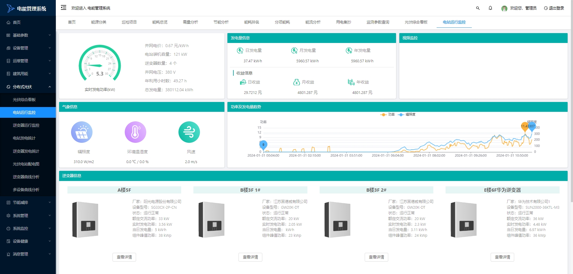 - 光伏综合看板与电站运行监控:展示光伏系统的综合运行数据和状态,实时监控光伏电站的运行状态,确保电站稳定运行。