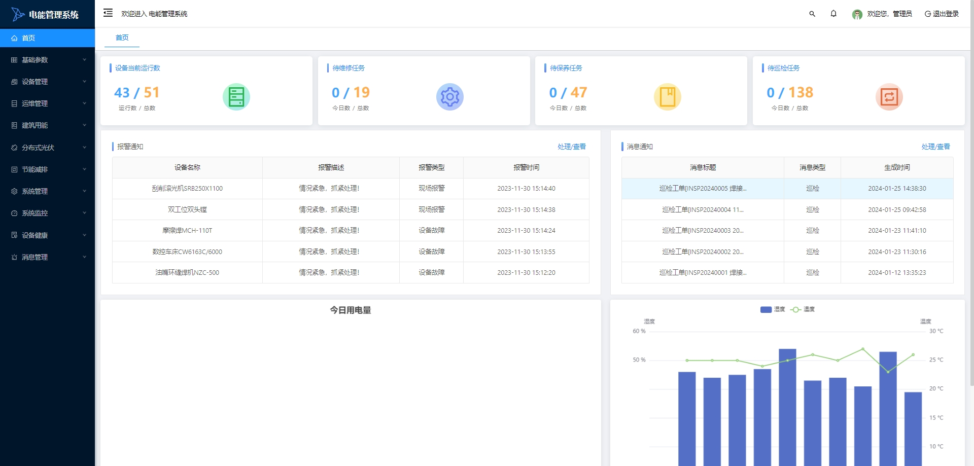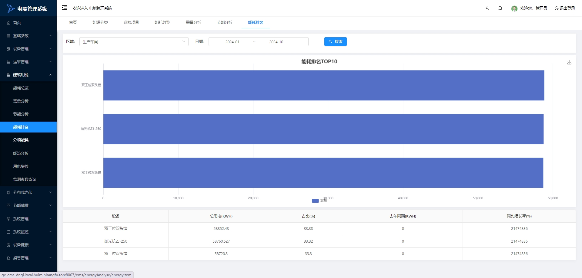 - 能耗总览与分析:提供建筑或设施的能源消耗总览,包括能耗量、成本和效率,分析能源需求的峰值和低谷,评估节能措施的效果。