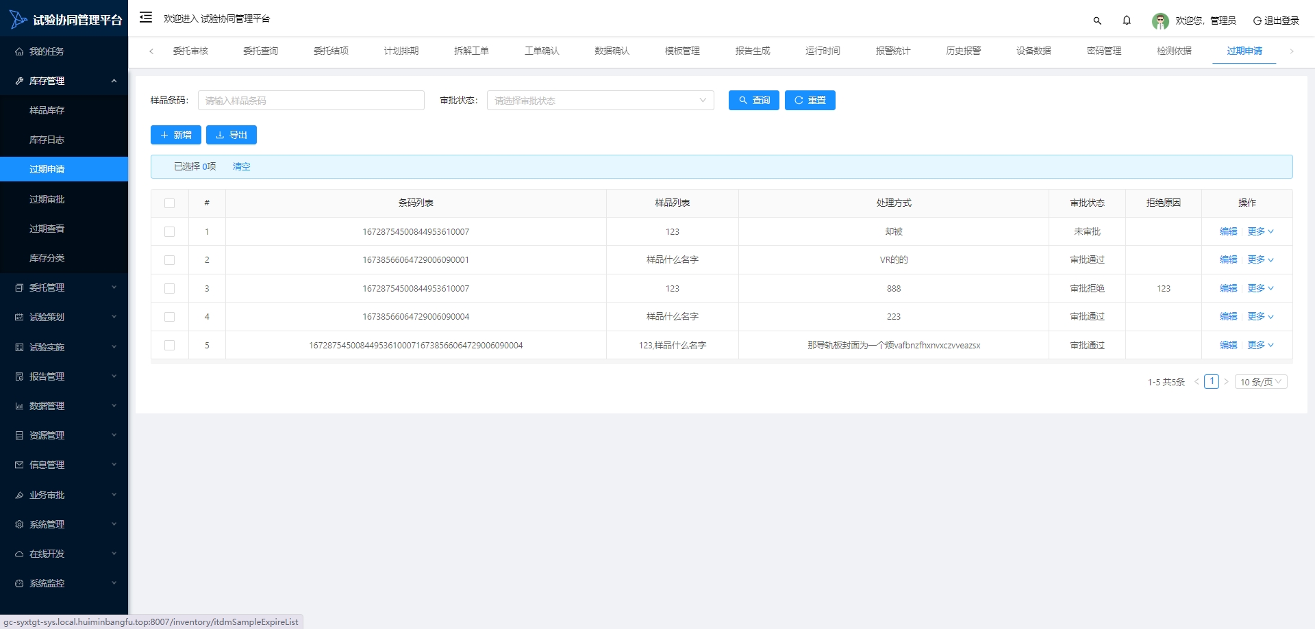 - 过期申请:允许用户提交库存物品过期的申请,以便及时处理过期物品。