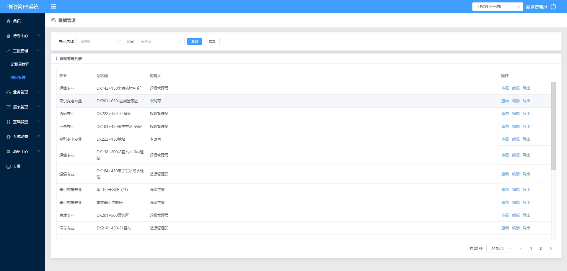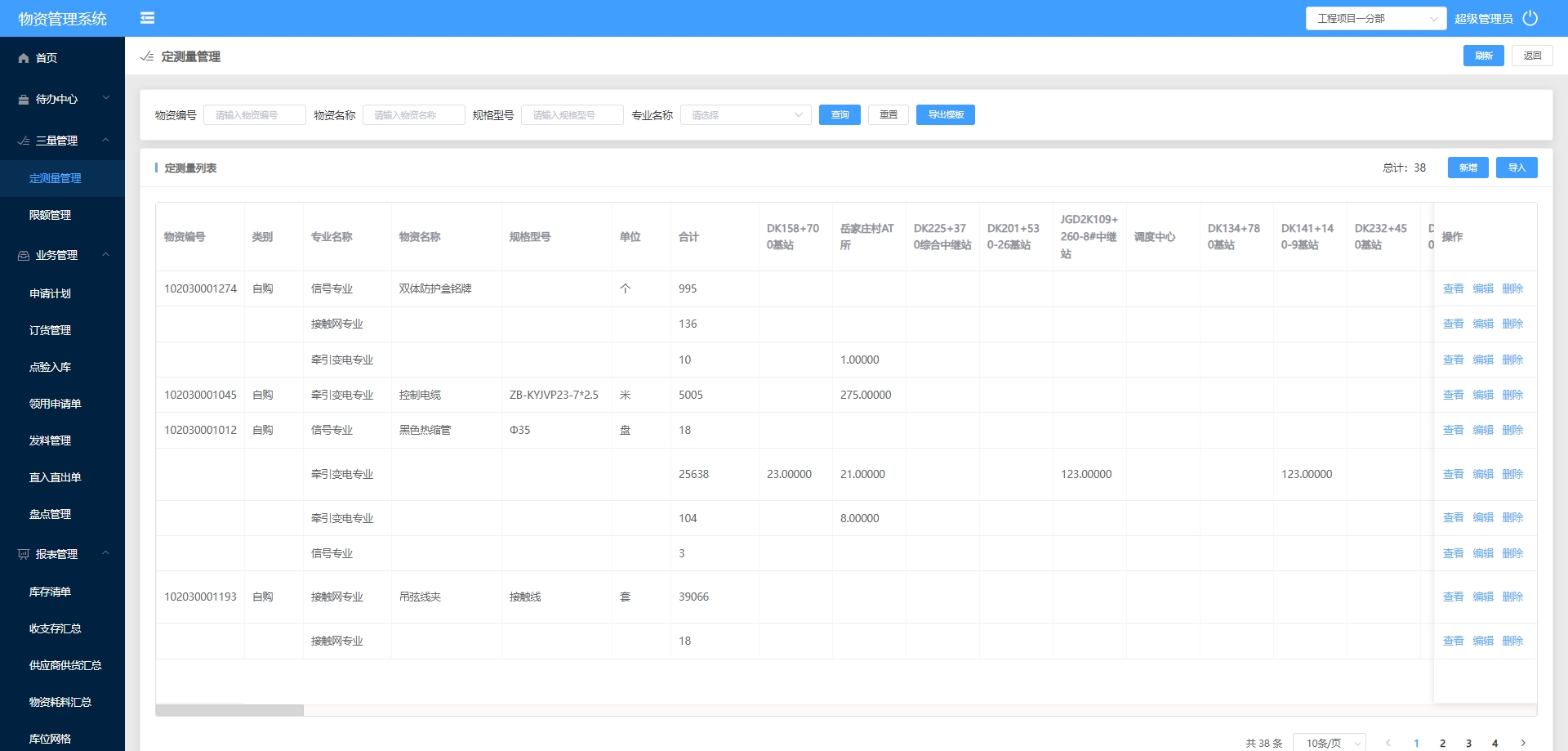 - 三量管理:包括定岗量管理、限额管理、申请计划和订单管理,确保物资的合理分配和使用。