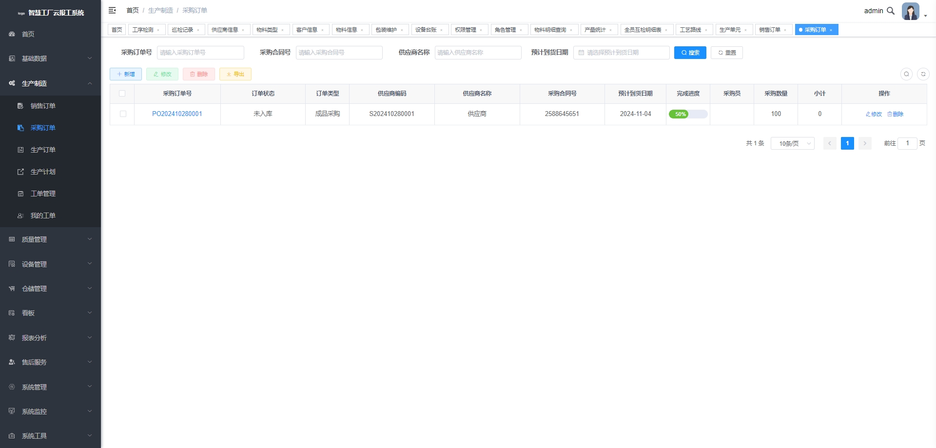 - 生产管理:包括生产计划、工单管理、工艺路线等,优化生产流程。