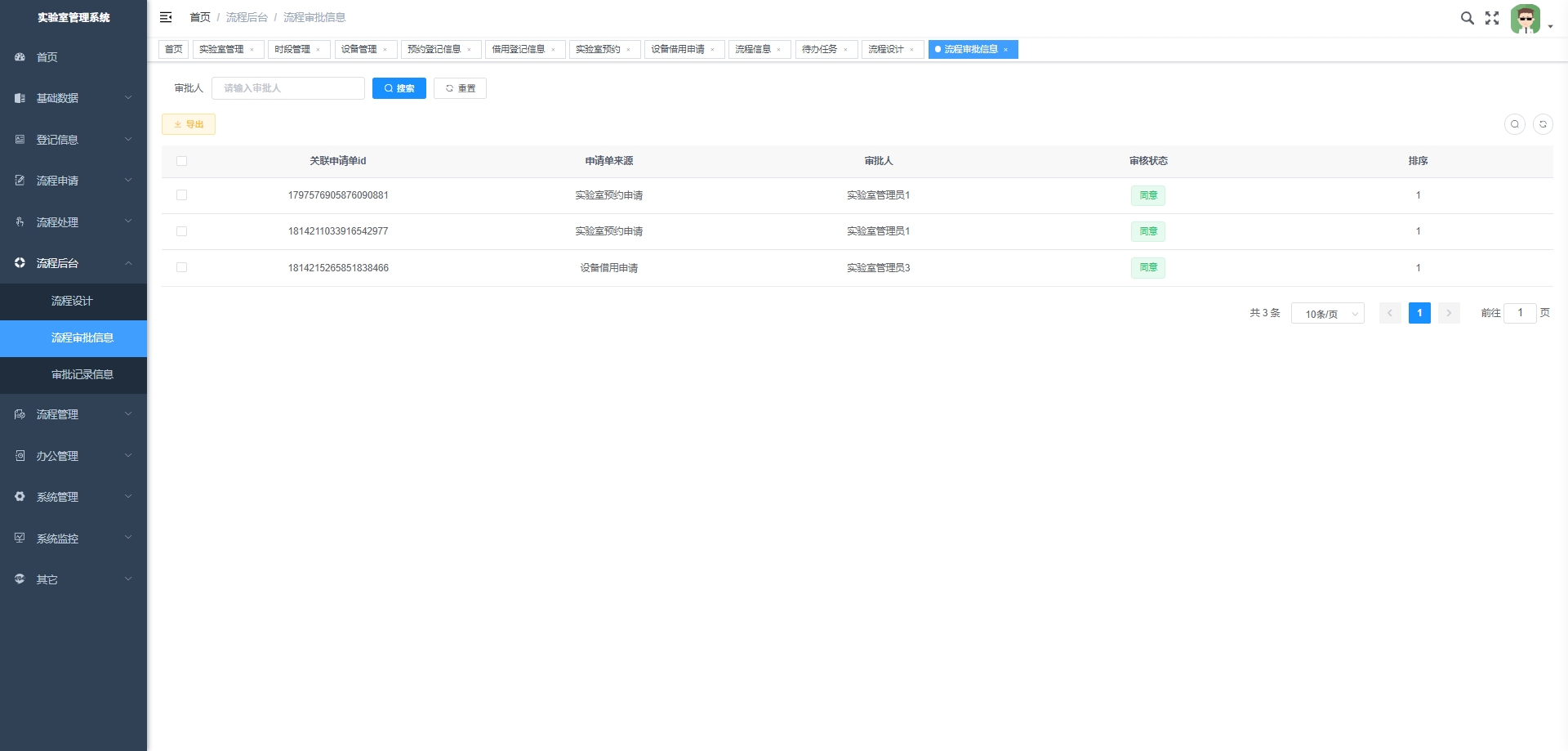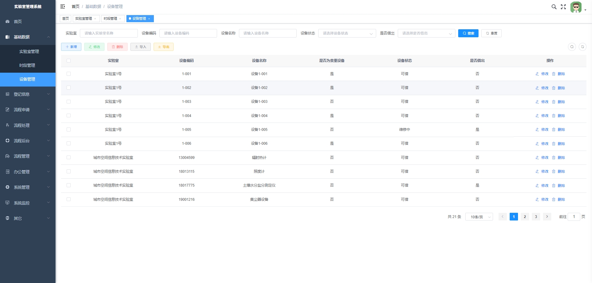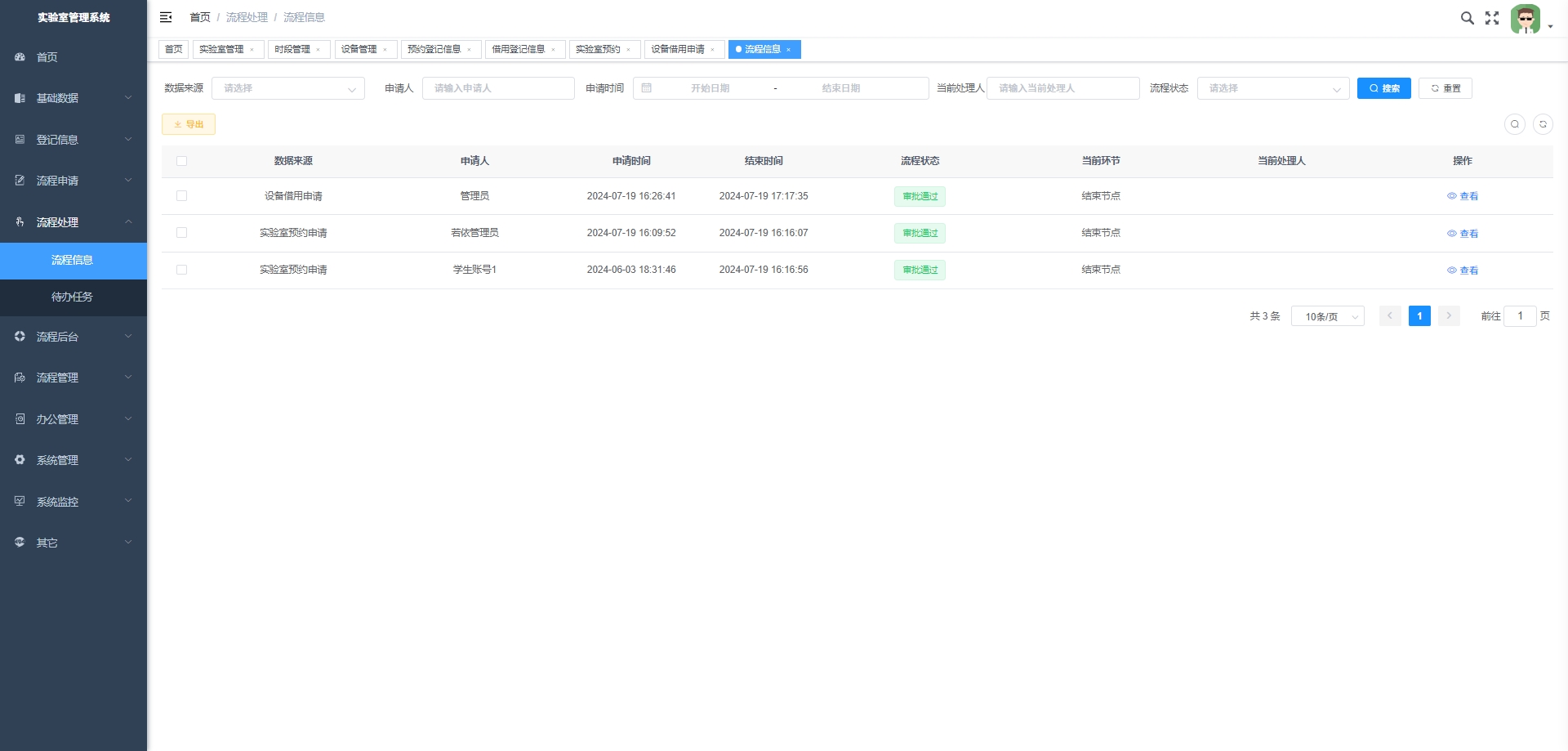 - 设备借用申请:处理实验室设备的借用申请,包括申请提交、审批和记录。