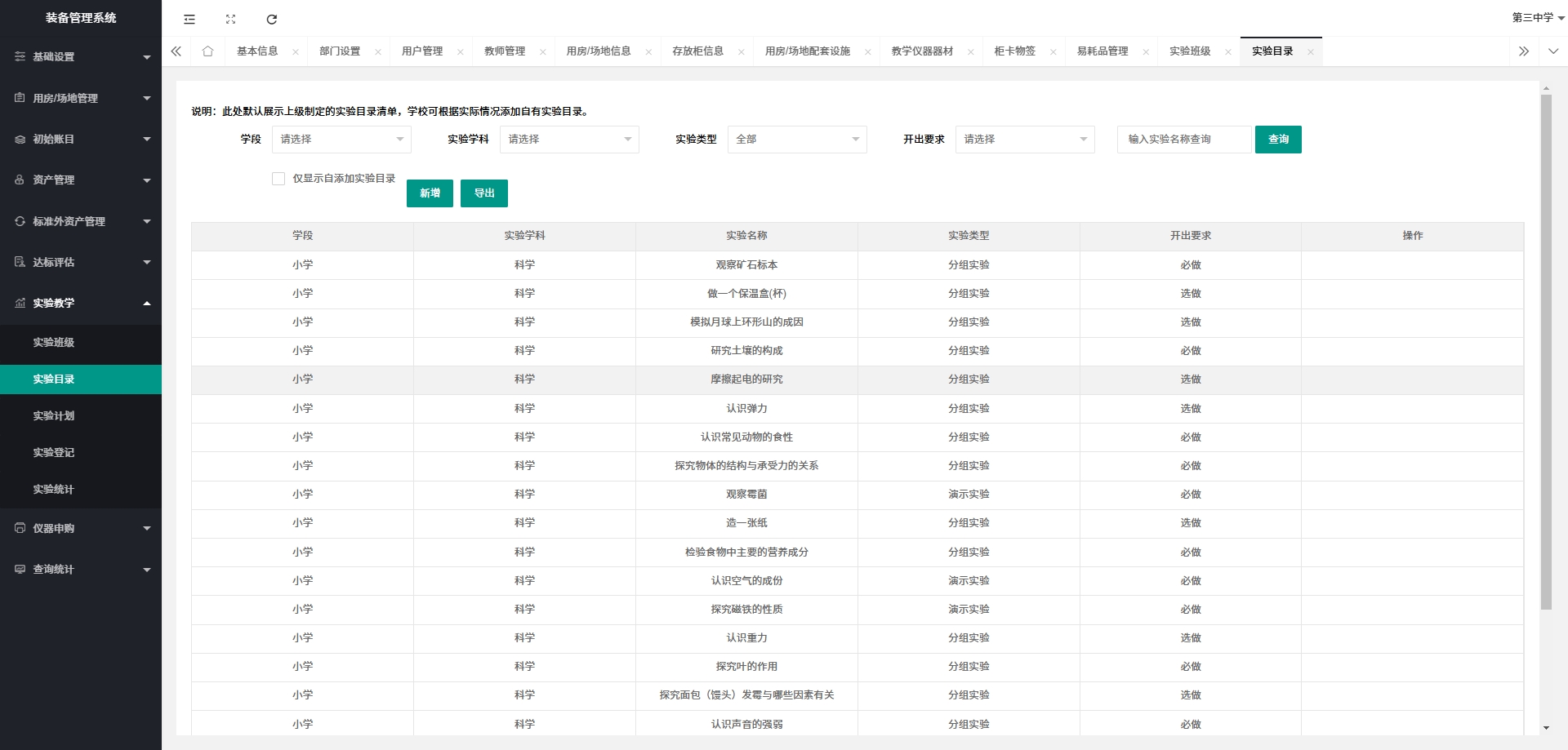 - 标准外教学仪器管理:管理不符合标准的教育仪器和器材,确保其使用和维护。