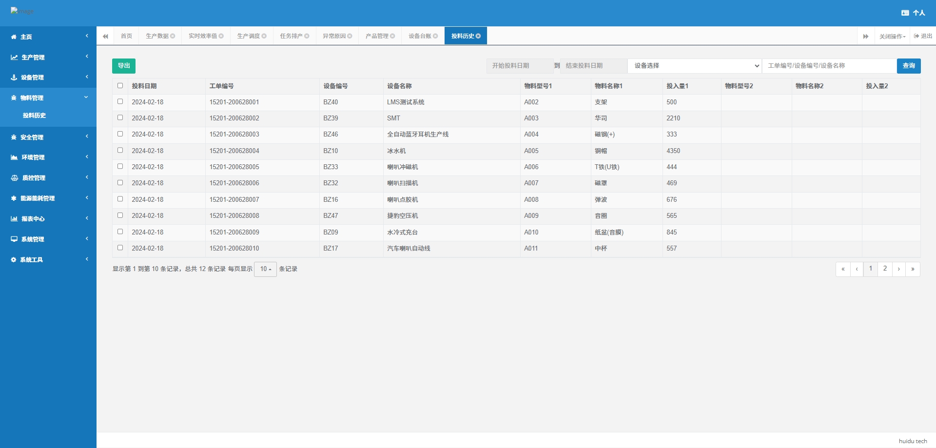 - 投料历史:记录物料的投入历史,用于生产成本分析和物料管理。