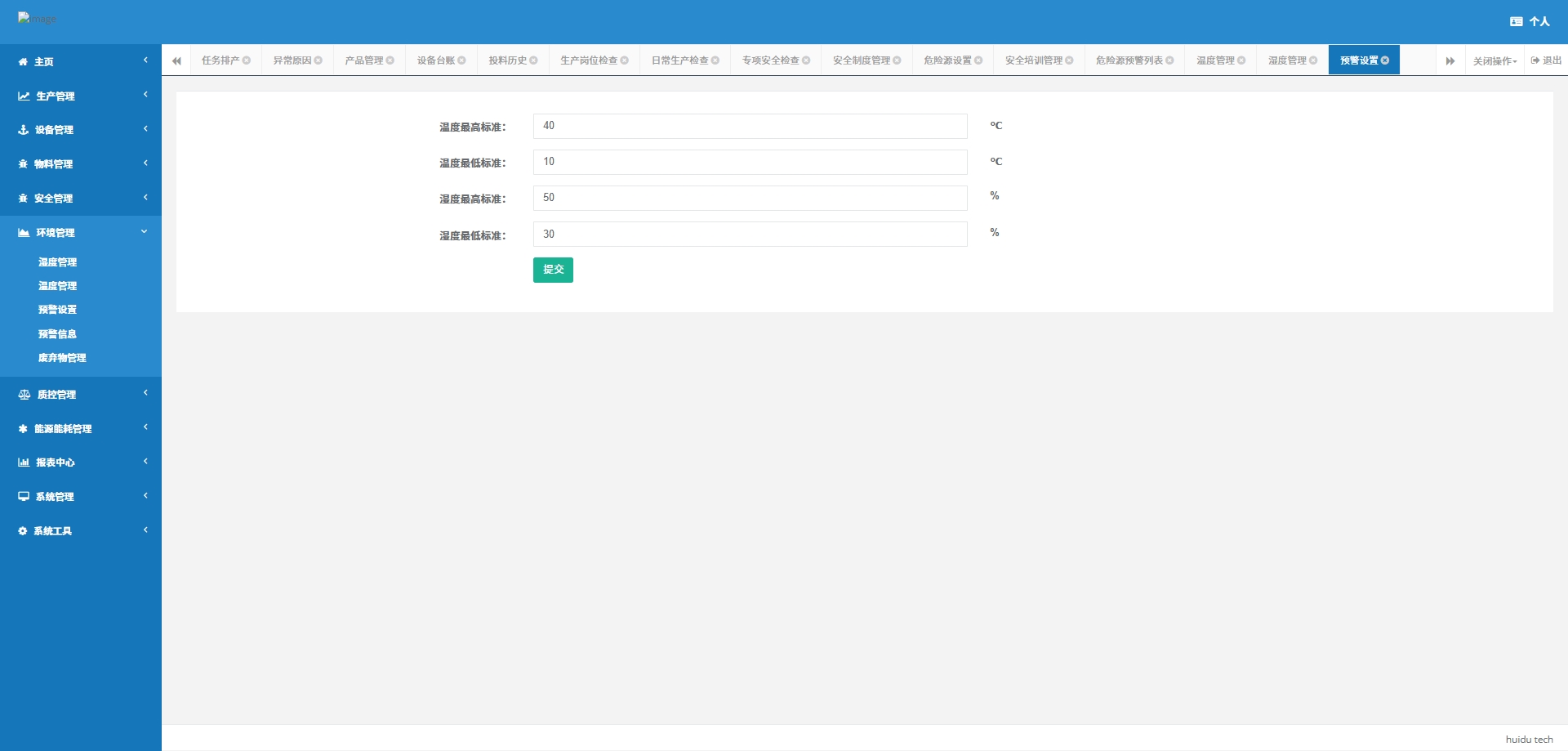 - 预警设置:设置环境参数的预警值,当参数超出正常范围时发出预警。