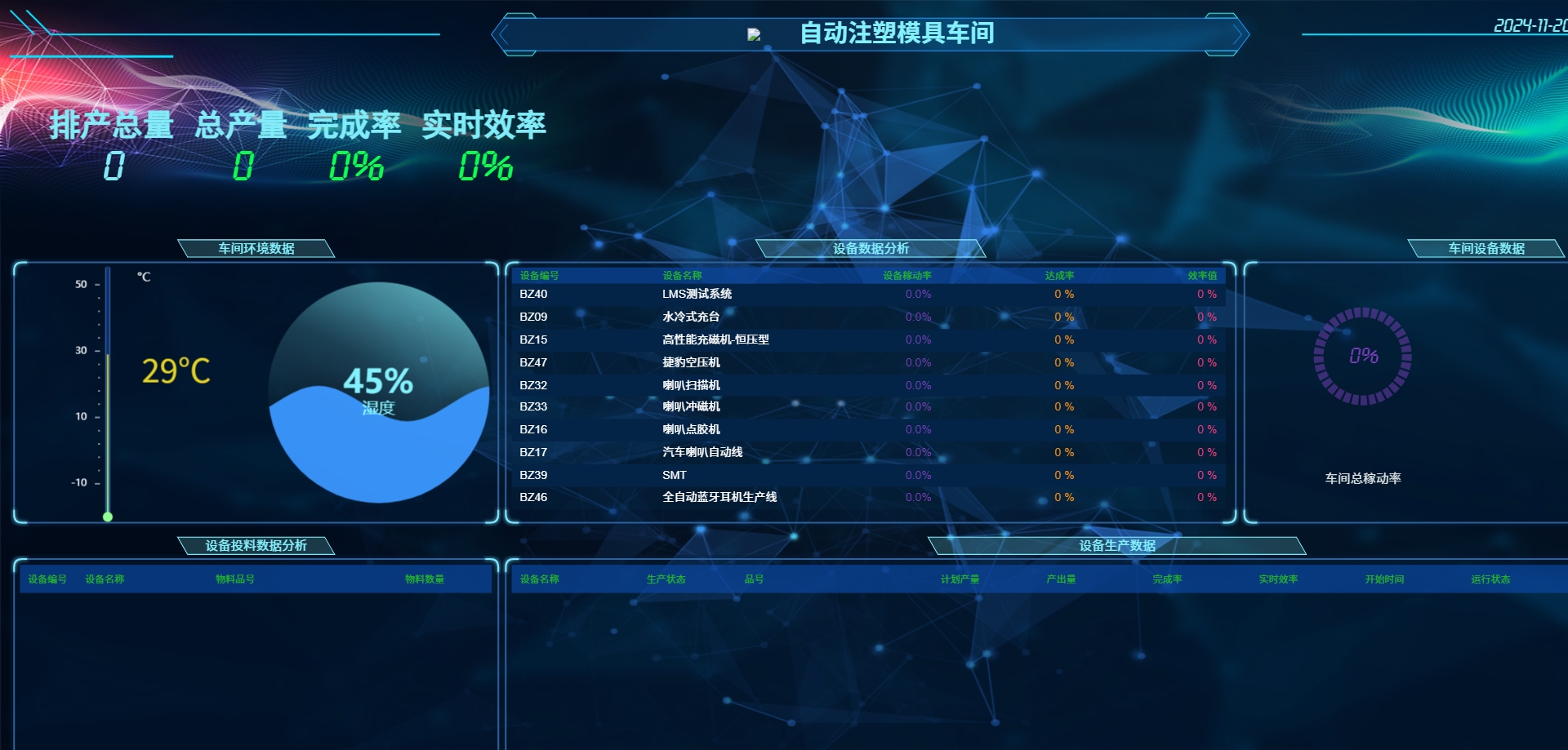 - 稼动率报表:展示设备的稼动率,评估设备使用效率。