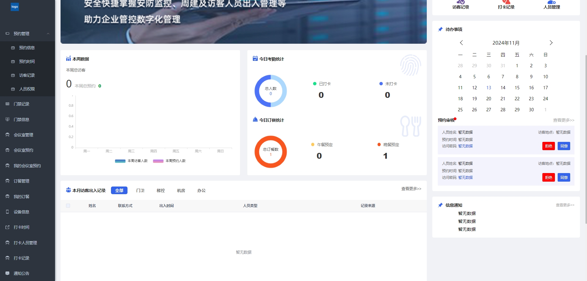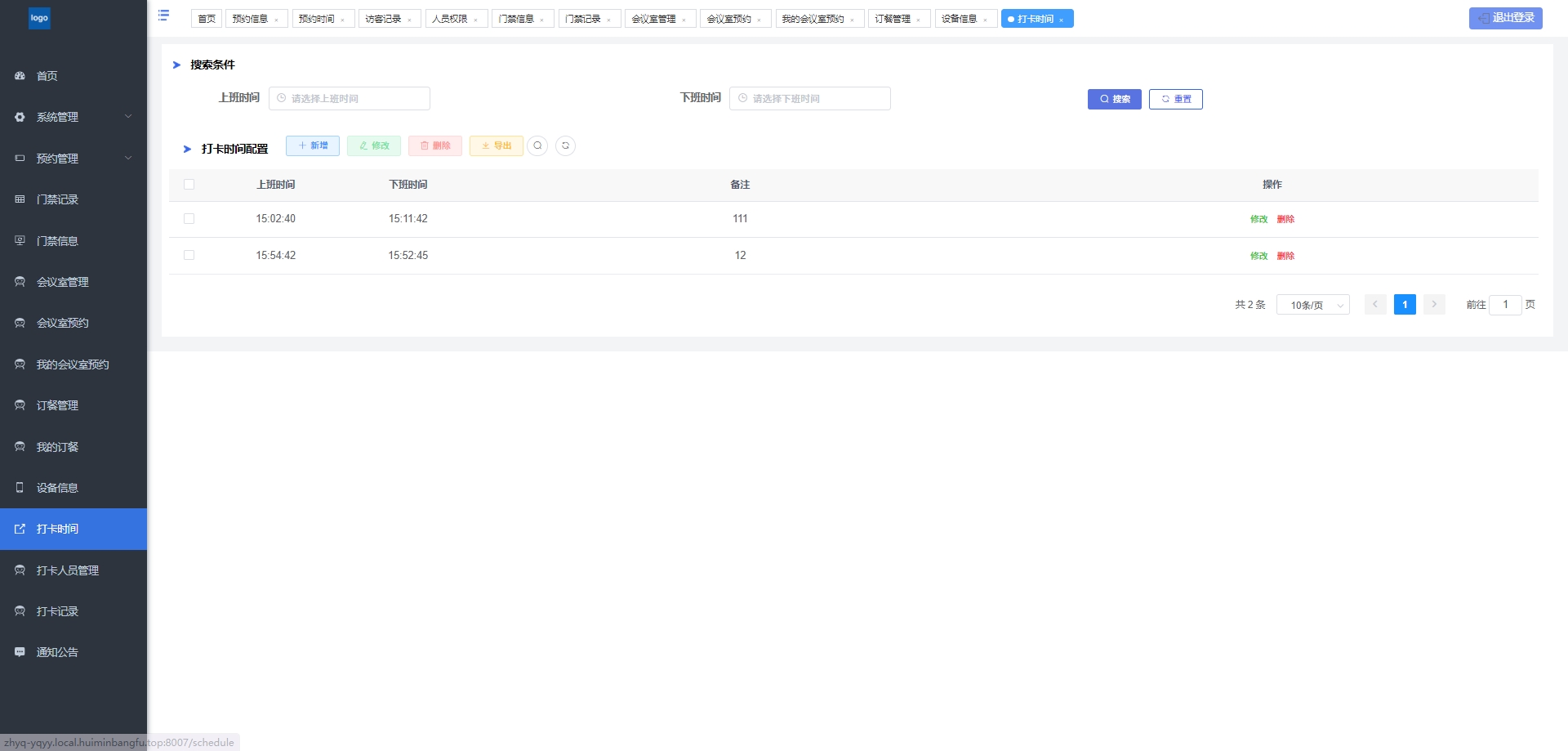 - 访客记录:记录访客的访问信息,包括访问时间和目的。