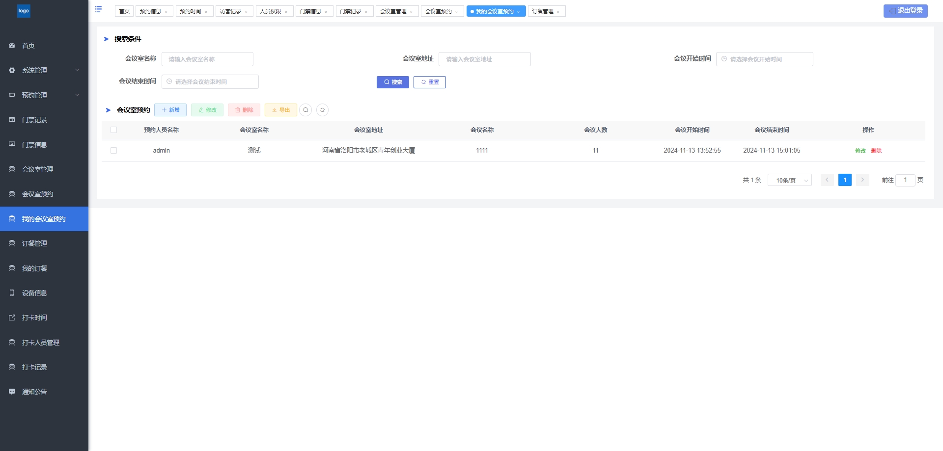 - 我的会议室预约:展示用户个人的会议室预约情况,方便用户查看和管理。
