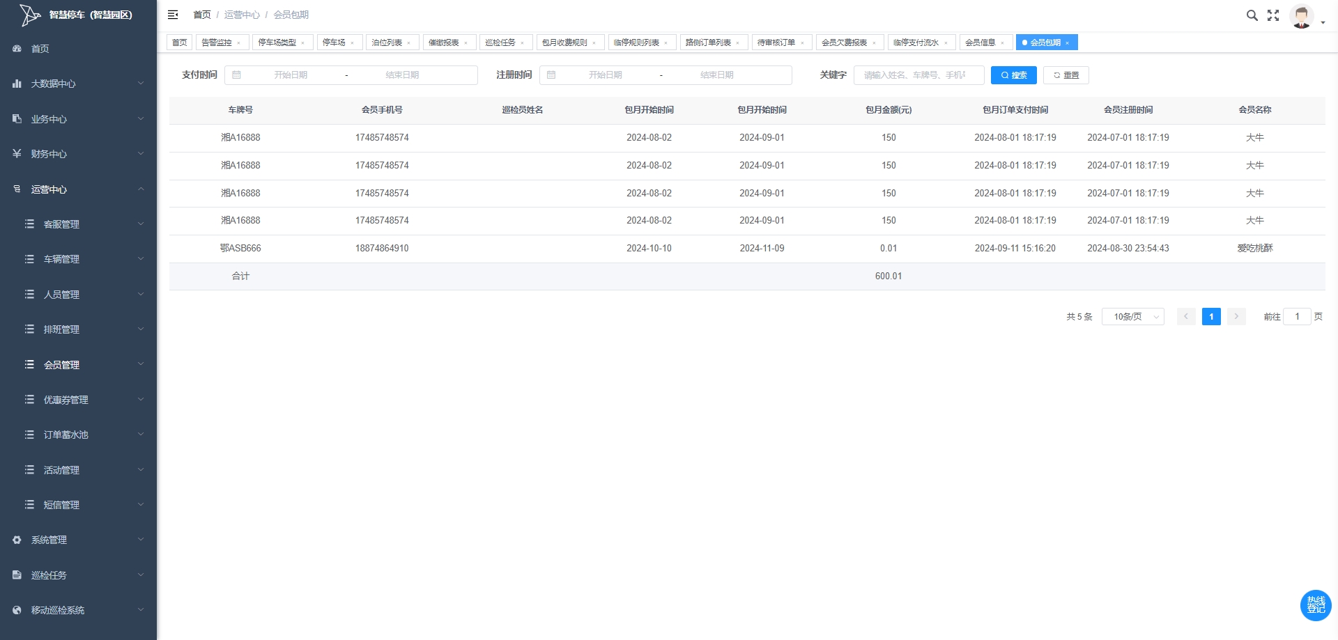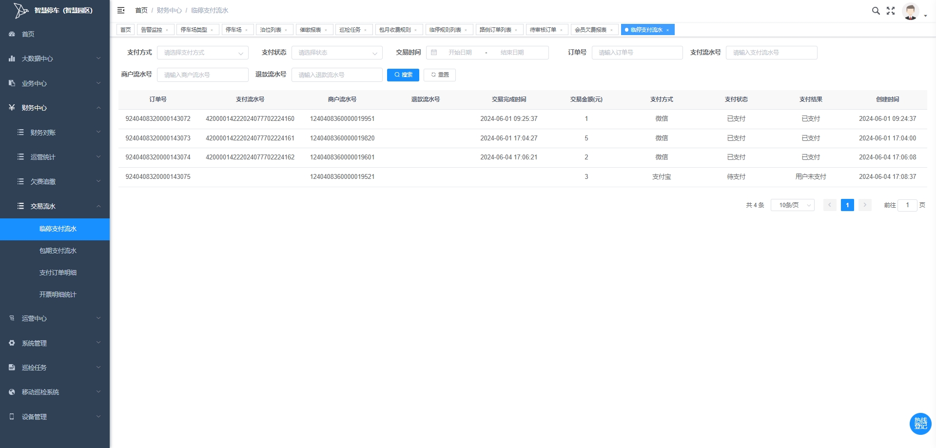 - 运营对账报表:核对停车场运营过程中产生的所有收入与支出,包括停车费、罚款、服 务费等,以确保运营数据的准确性和完整性。