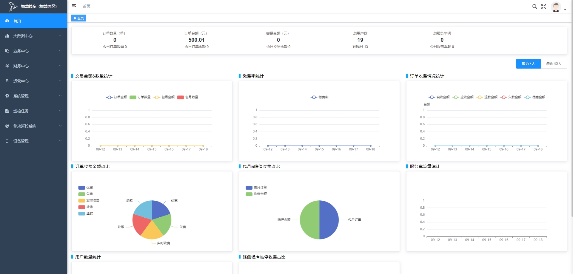 - 车场数据统计:提供了对车场使用情况的详细统计和分析。用户可以查看车流量、停车 时长、收费情况等数据,并可能支持按日期、时间段、车场位置等条件进行选。此 外,还可能提供图表和报告生成功能,帮助管理者更好地理解车场的使用式和趋势 从而优化资源分配和运营策略。