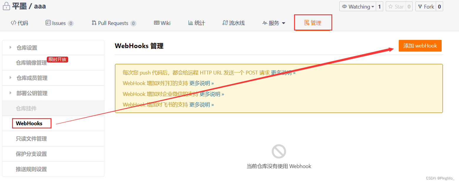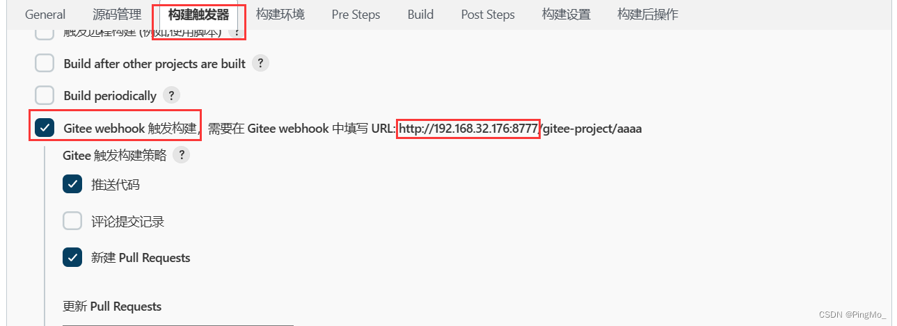 gitee默认不允许内网触发。----必须要配置内网穿透
