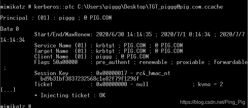 根据获取的信息。对域账户进行权限提升,也就是做写入域管理权限的票据到内存的操作