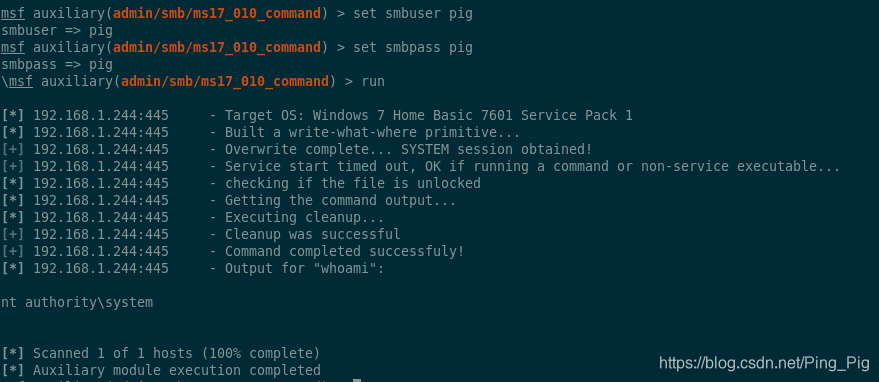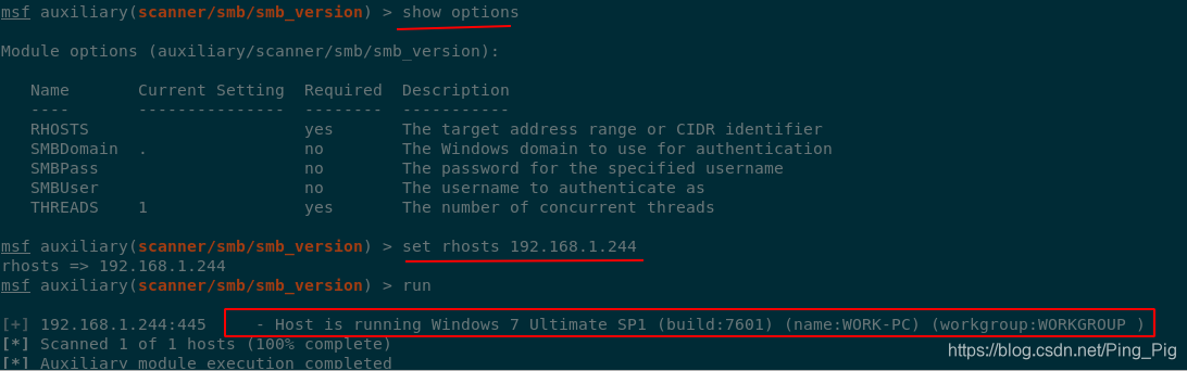 use auxiliary/scanner/smb/smb_version 扫描目标机器的445版本信息