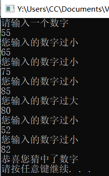 cout << "您输入的数字过大" << endl;//比随机数大,提示输入过大