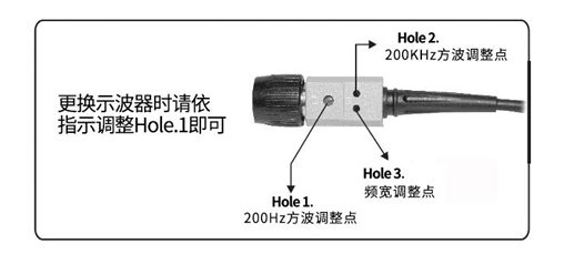 连接衰减棒至示波器,输入200Hz方波至衰减棒测试端然后调整示波器控制项进而显示一些波形, 并针对方波波型上升型态调整位于BNC接头的可变电容器