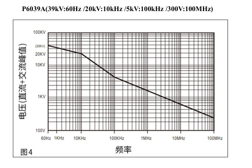 P6039A,当测量电压源超过DC30kV或者AC20kV以上时,不适用于长时间试用。因为高电 压的测量源将会对空气中任意放电,造成高压电源的稳压电路来不及反应,瞬间将会有脉冲高压发 生,脉冲高压很有可能超过本产品的额定值,将会造成严重损坏。