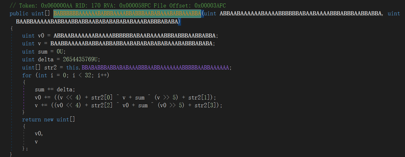 uint32_t sum = delta * 32; //反过来最后一次的sum,循环32次