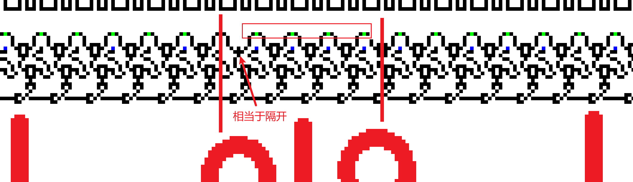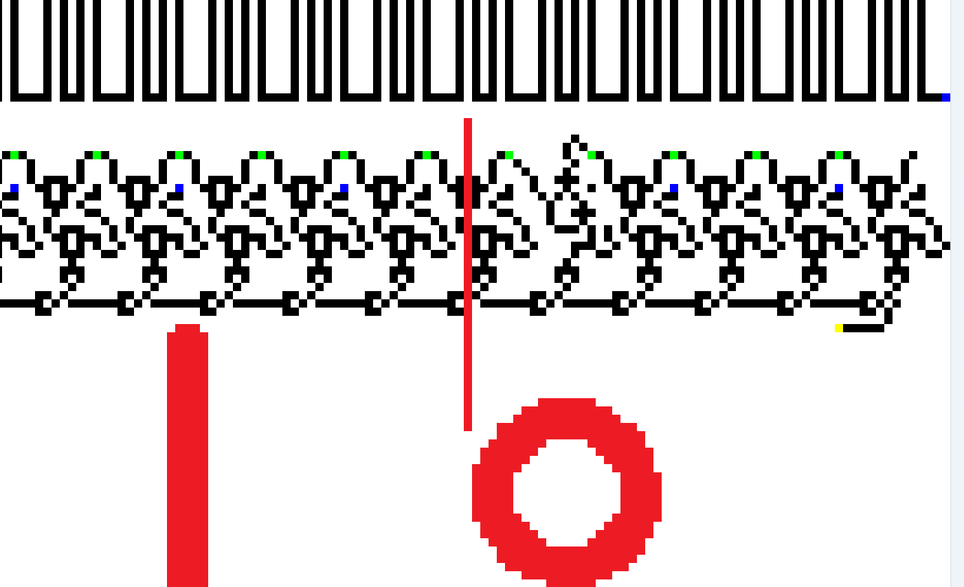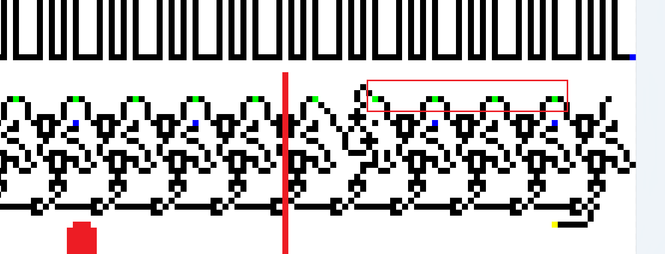 乍一看难以理解,结合wireworld的规则,我们可以分析出图案蕴藏的含义