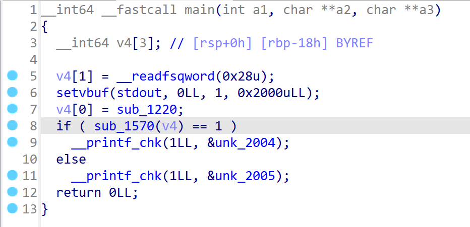 sub_1570太大了加载不出来,应该是加密的主逻辑,目的是需要输出1