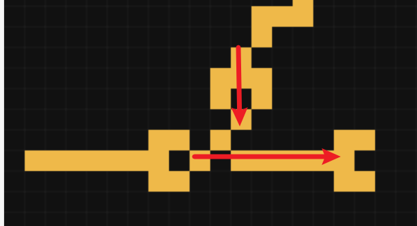 箭头所指的导线周围有三个电子头,但我们的规则是当仅有一个或仅有两个电子头的邻居是导体时,导体→电子头