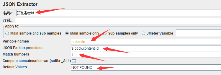 Variable names:保存的变量名,后面使用${Variable names}引用