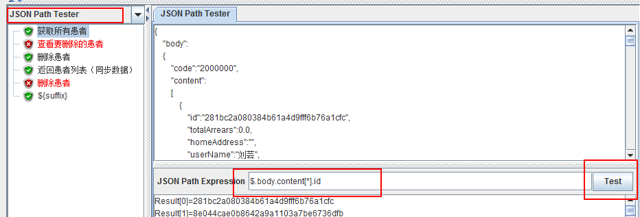 步骤二:在查看结果树中,通过json path expression找到需要的json值