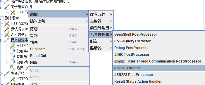 步骤一:选择HTTP请求—>后置处理器—>JSON Extractor