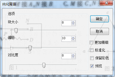 经过测试,在PS中影印算法的结果是和背景色和前景色的设置有关的,在文本图像的应用中,前景色设置为黑色(字体的颜色),背景色为白色(纸张的颜色),此时就可以获取一个基本的漂白效果了,如下所示: