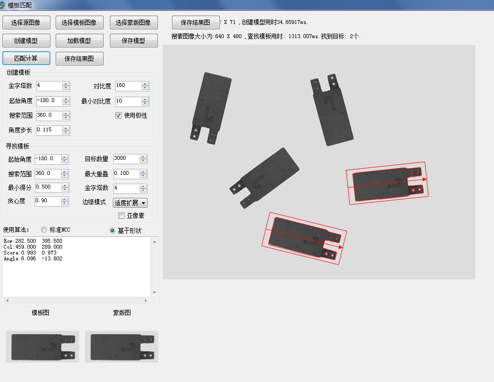 以一个我常用的测试图中一个结果为例说明(使用基于边缘的匹配算法):