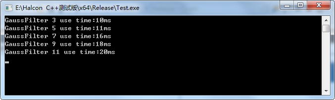 我们测试了halcon的gauss_filter 的速度,测试代码如下所示: