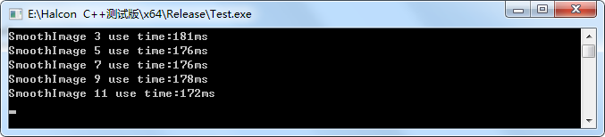 不过halcon的smooth_image似乎非常的慢,即使我不用其"gauss"参数,同样的图片,其耗时如下所示: