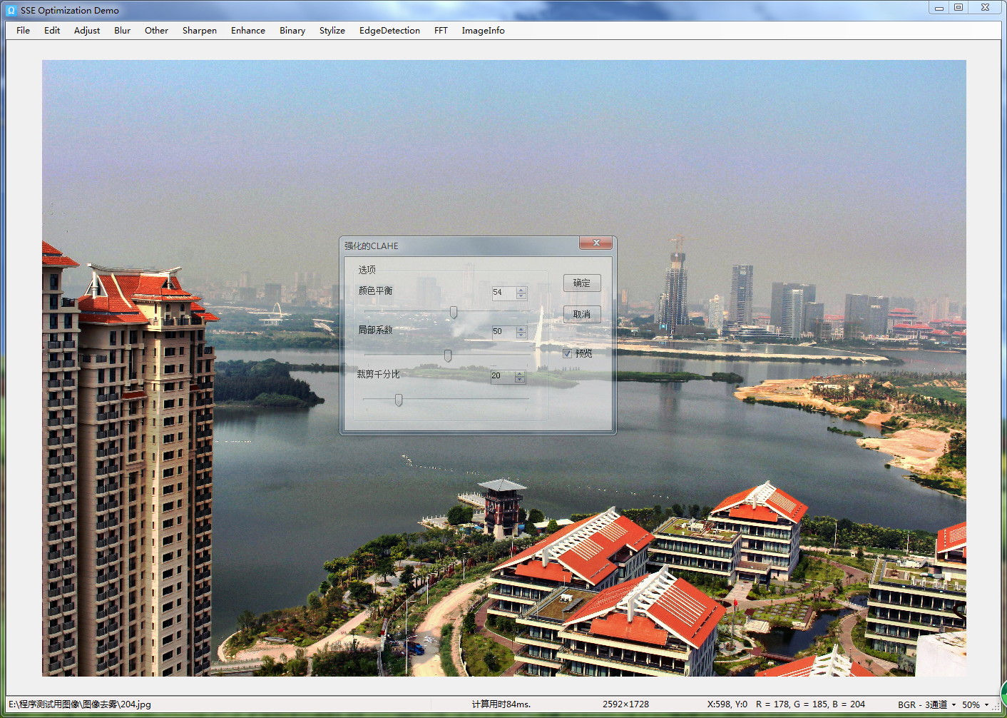 Adaptation = 0,Correction = 50, ClipLimit = 20时的效果 Adaptation = 100,Correction = 50, ClipLimit = 20时的效果