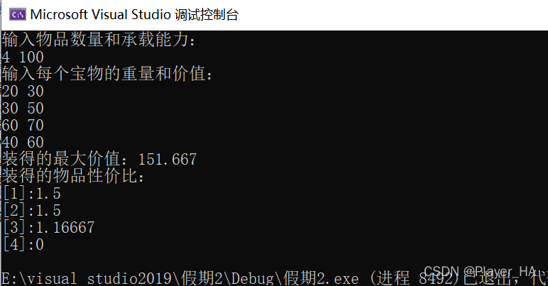 cout << "装得的物品性价比:" << endl;