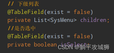 下面是Menu类中定义的两个属性 - 方便形成树形结构